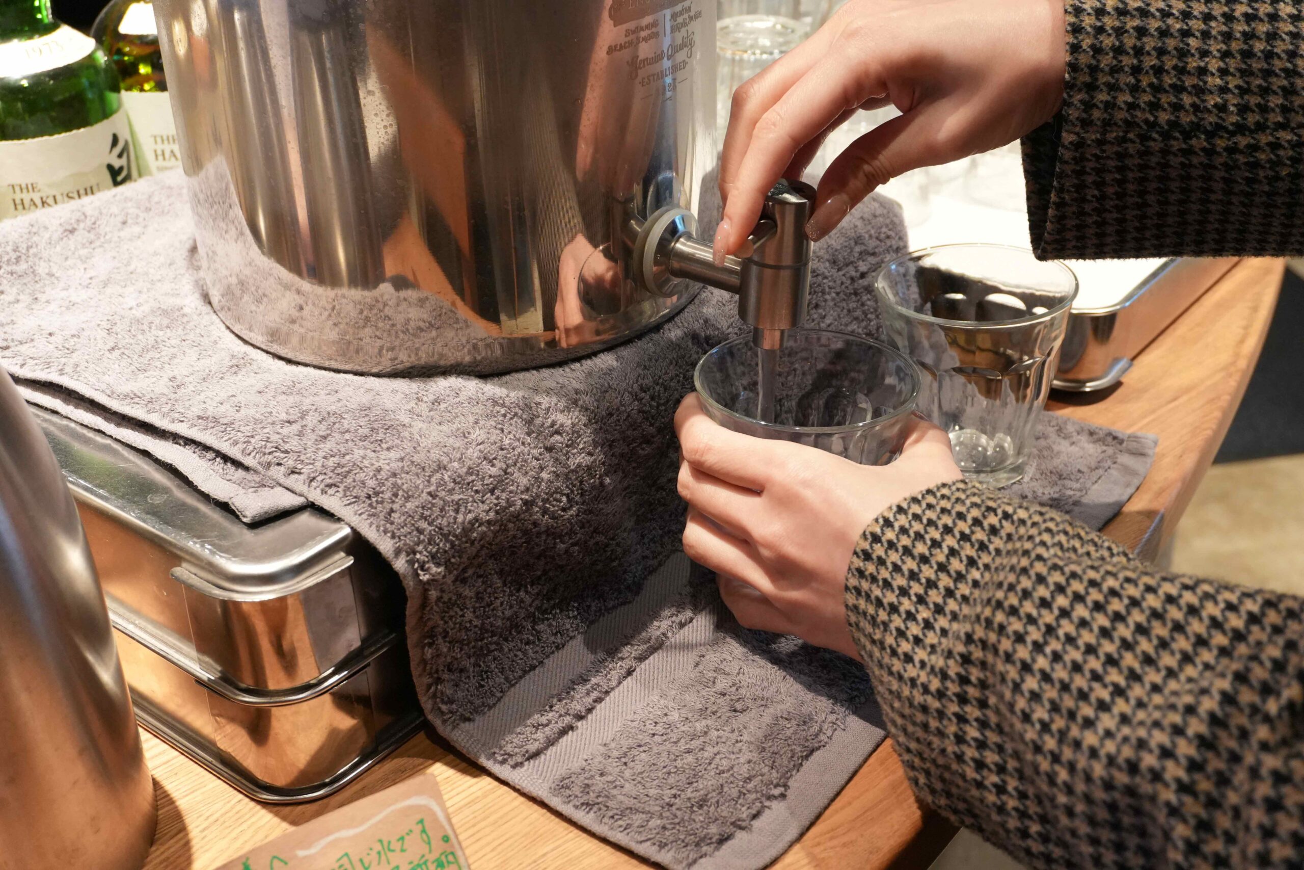 お水はセルフサービスとなっていますが、このお水は温泉水が使われており、体に優しいのも嬉しいポイントですね。