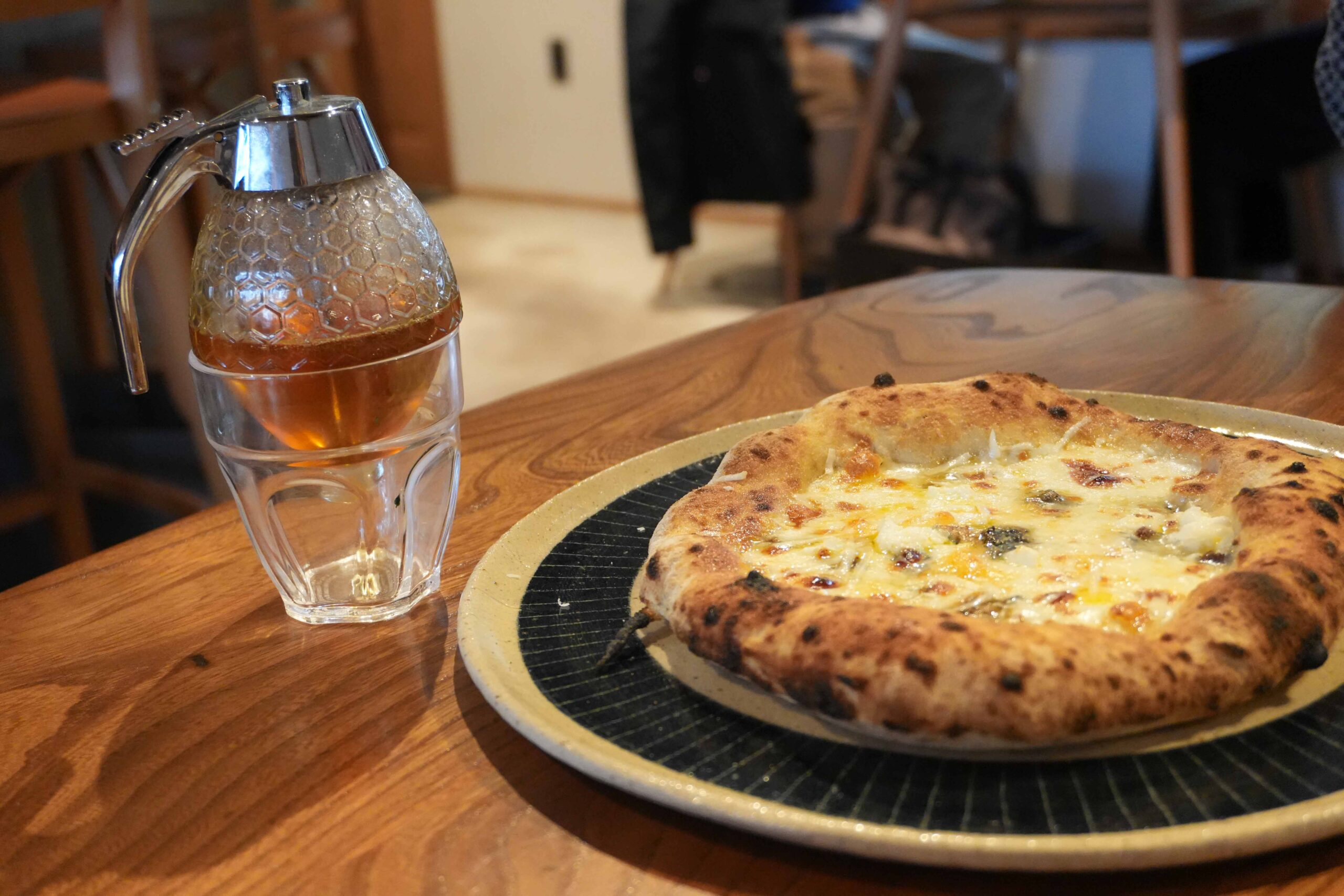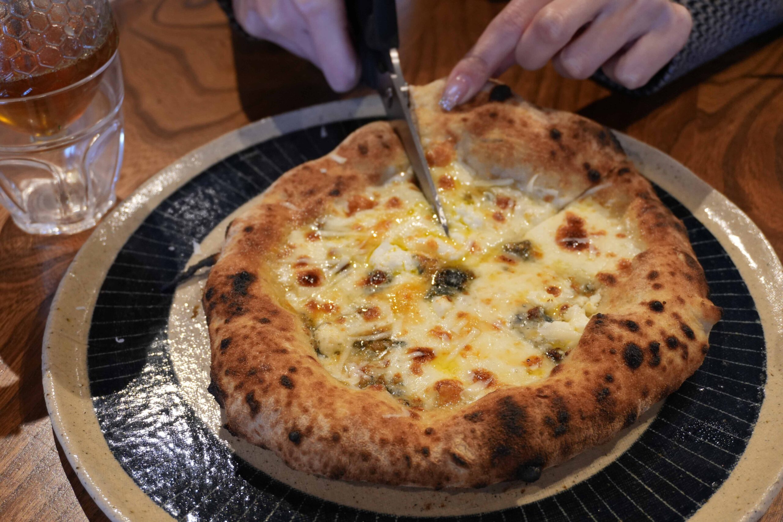 4種類のチーズを使った「クワトロフォルマッジ」は、チーズ好きなら必ず注文したい一品です。このピザの面白いところは、3つの異なる食べ方で楽しめることです。
