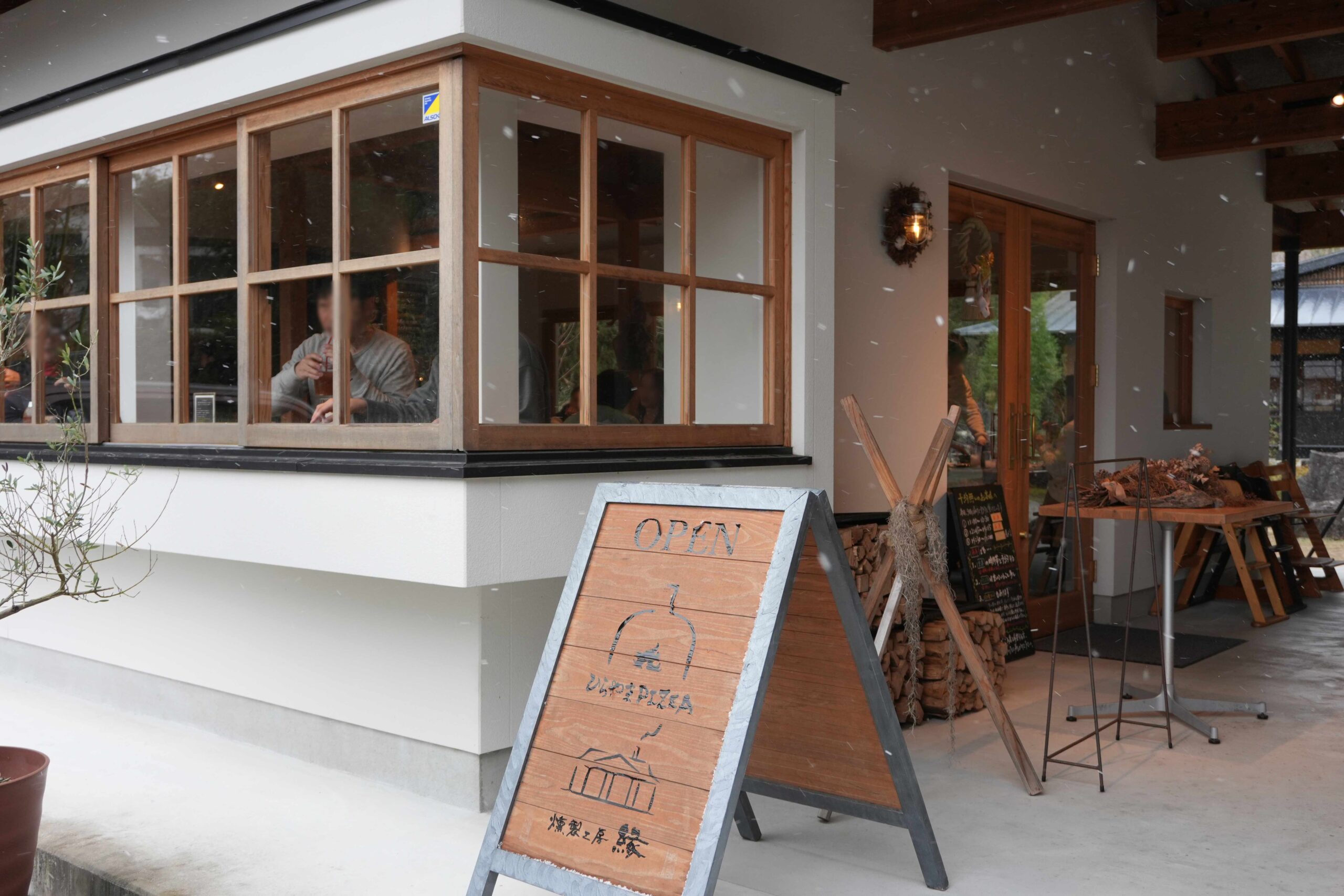 駐車場は敷地内に広く用意されているため、車でのアクセスも安心です。山道を進むと、突然現れる「ひらやまpizza」さんの建物。自然の中に溶け込むような佇まいが、これから始まる特別な食事の時間を予感させてくれます。