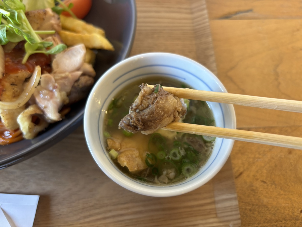 通常であれば味噌汁を提供されることが多いとのことですが、この日はイベント翌日であったため、具材の関係から肉吸いになったとのこと。
