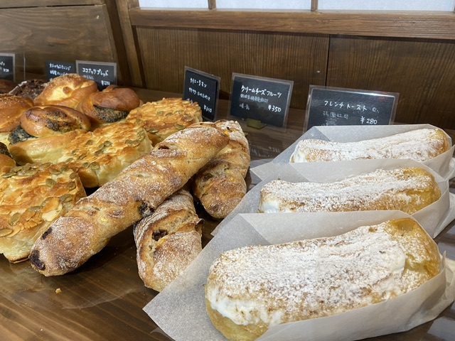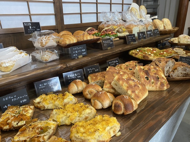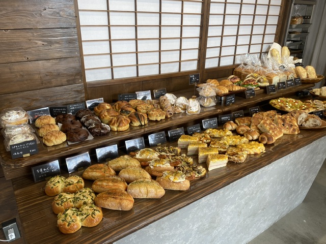 古民家を改装したオシャレで落ち着いた雰囲気の店内には、種類豊富なパンがずらりと並んでいます。