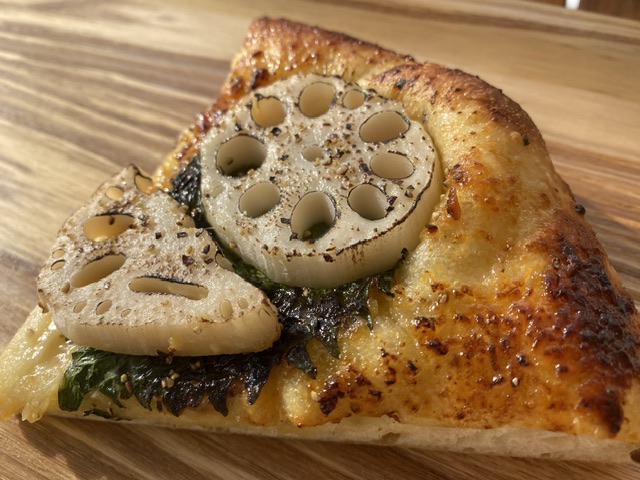 シャキッとした食感が楽しいレンコンに、味噌の旨みが加わり、大葉が良いアクセントになっています。口の中で美味しさが広がる、食事にもおつまみにも合う一品です。