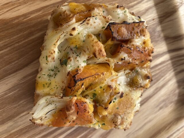 冬季限定!甘みのあるかぼちゃと自家製ホワイトソース、チーズのコクがたっぷり感じられる、やさしく濃厚な味わいの惣菜パンです。