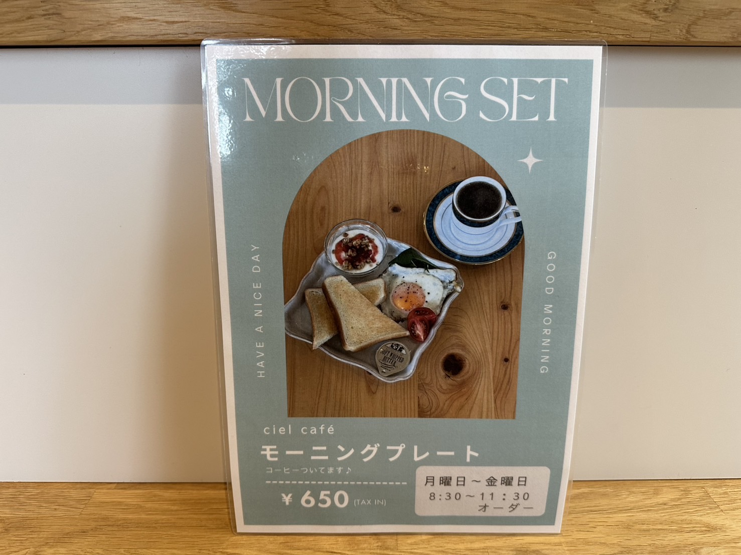 月〜金曜日の8時半から11時半の時間帯では、モーニングメニューが選べます!このボリュームで、税込650円はお手頃ですよね!思わず2度見しました(笑)。