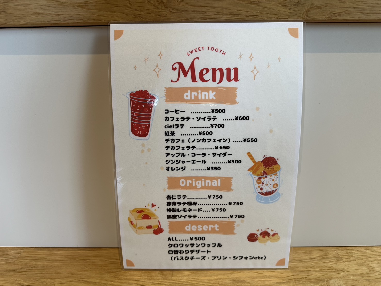 「ciel café」さんは、メニューには載っていませんが、お酒の提供も可能とのこと。一杯500円〜700円程度で提供いただけるそうですよ。お酒を飲みたい方は、口頭で注文されてくださいね♪
