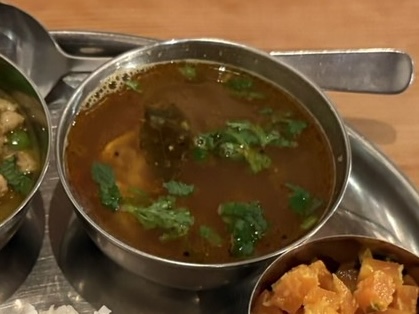 ラッサムはしっかり辛いのに、後味が爽やかでクセになる美味しさでした。