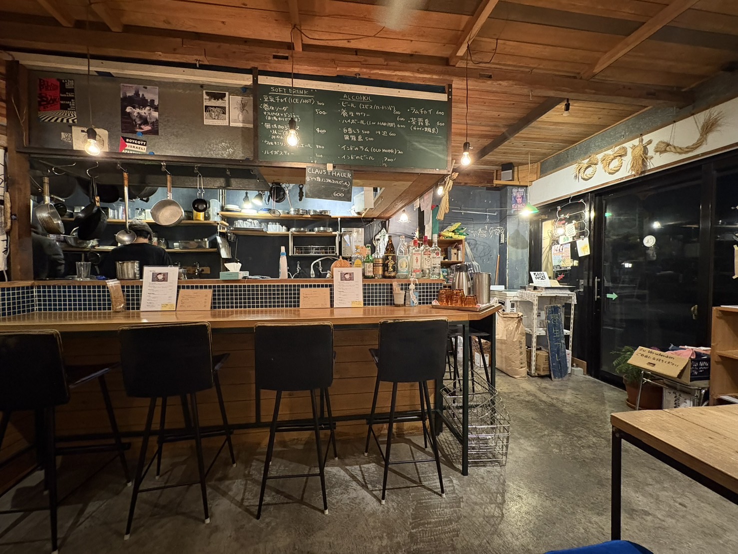 おつまみも「自家製ポテトフライ」「豆腐クミンのチキンナゲット」「おつまみハーフカレー」など、お酒と一緒に味わいたくなる一品ばかり。夜の利用にもぴったりです。