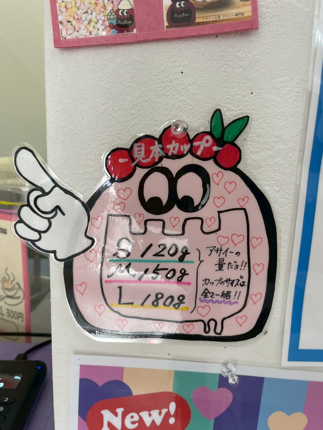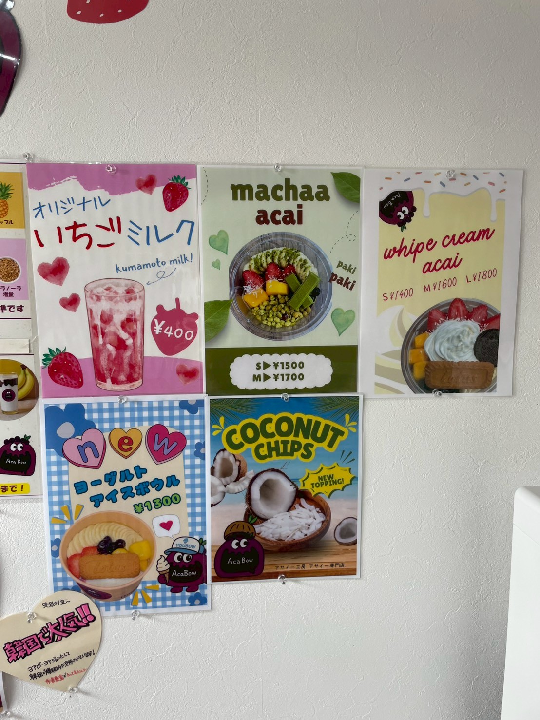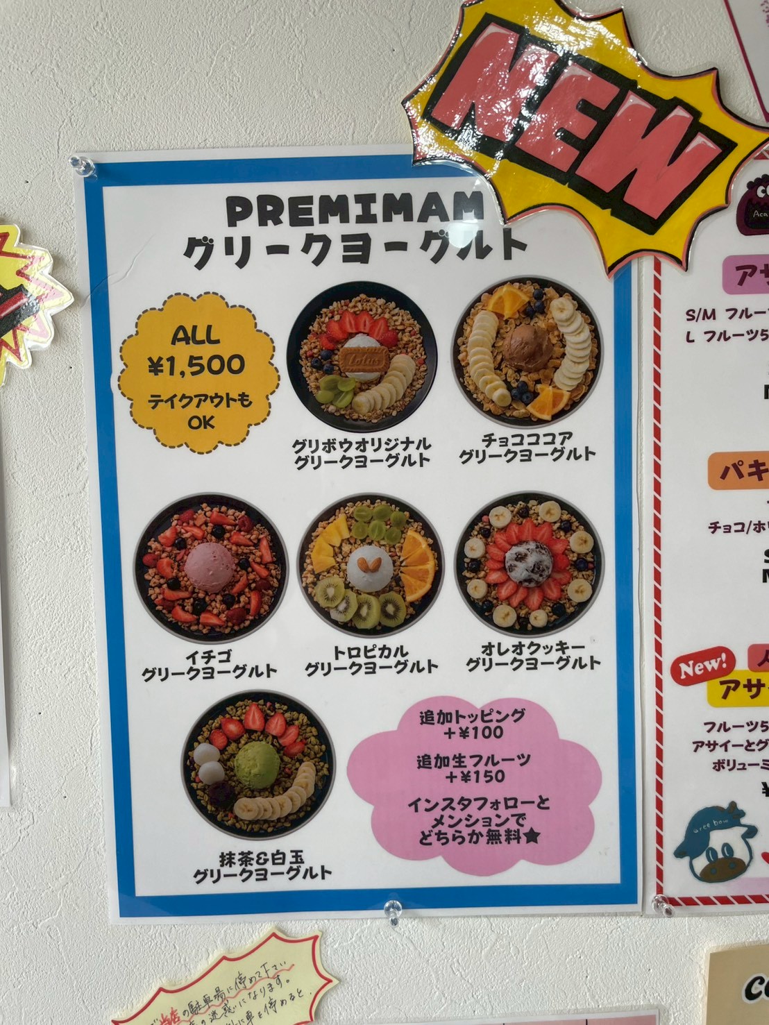 抹茶のアサイーやホイップクリーム乗せアサイーまで…!ついつい目移りしちゃいますね。