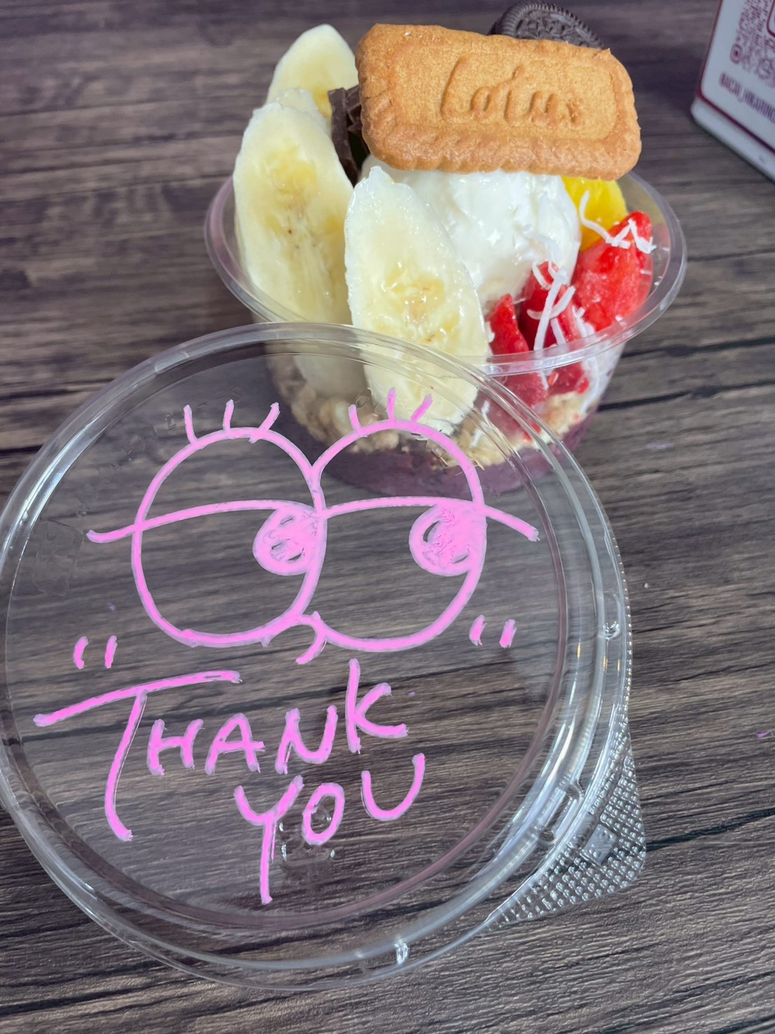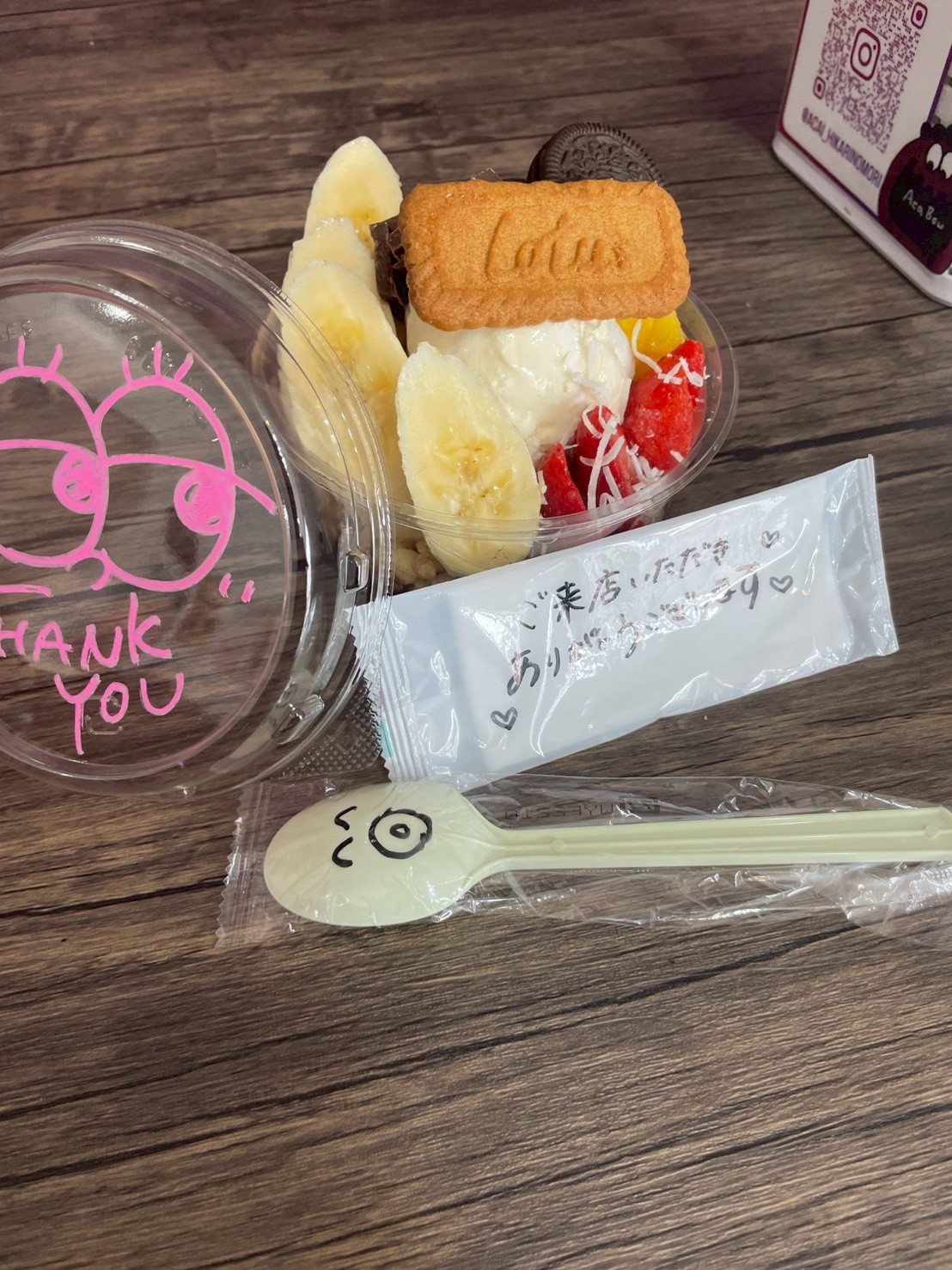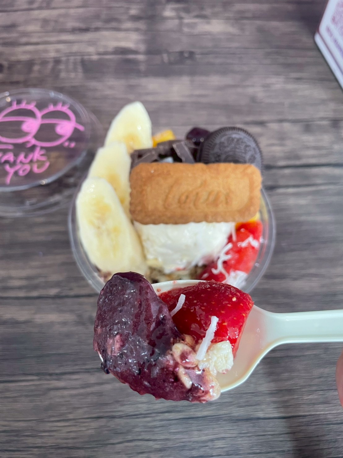 お店で人気ナンバーワンのアサイードリームを注文しました!蓋のイラストも可愛いですよね♡