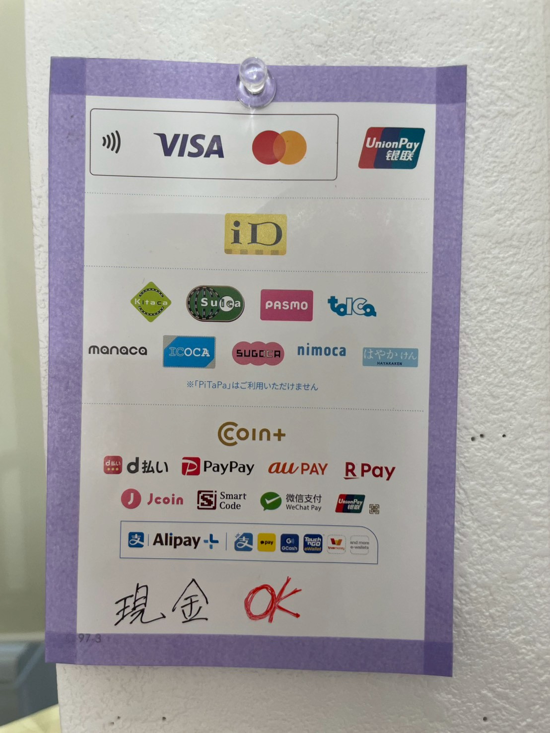 使用可能なお支払い方法はコチラです!現金以外にもキャッシュレス決済がたくさん使えるのは嬉しいポイントですよね!