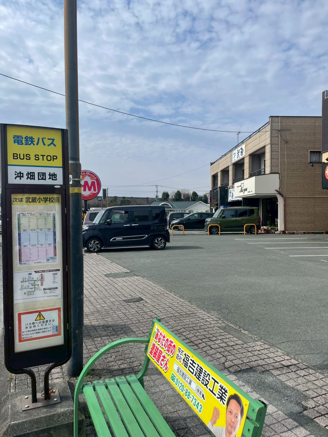 最寄りのバス停は「沖畑団地 バス停(熊本電鉄バス)」です。降りてすぐがお店です!