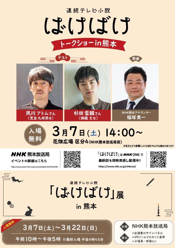 - ④ 3月7日(土)|NHK連続テレビ小説「ばけばけ」トークショーin熊本