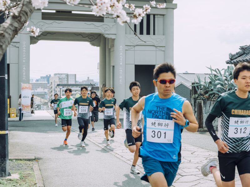 熊本市西区の名刹・本妙寺を舞台に、仁王門から加藤清正公の銅像まで続く石段を登る健脚イベントです。合計476段を超える石段に挑む参加者を地元の声援が後押し。親子・一般・学生の3部門があり、参加賞として地域のお買い物券(500円分)も授与されます。歴史ある境内で清正公の魂に触れながら、体と心を鍛える春のイベントです。
