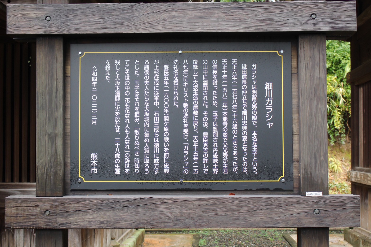 緑に包まれた静かな園内には、明智光秀の娘として生まれ、細川家に嫁ぎ、そしてキリシタンとして信仰を貫いた女性、細川ガラシャが眠っています。
