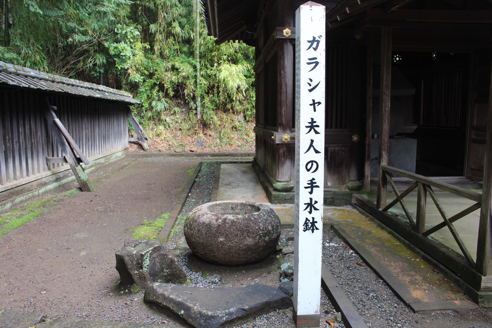 また先ほど紹介した通りこの地には、ガラシャゆかりの手水鉢も残されています。夫婦それぞれの人生と精神が、石という静かな存在を通して今に伝えられているのです。