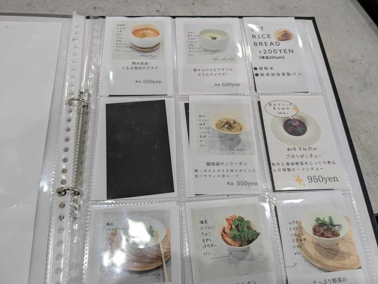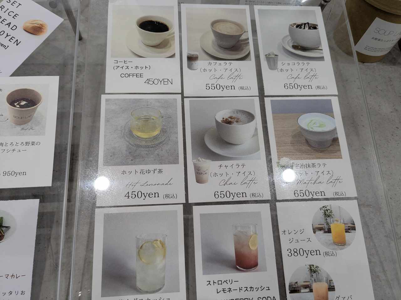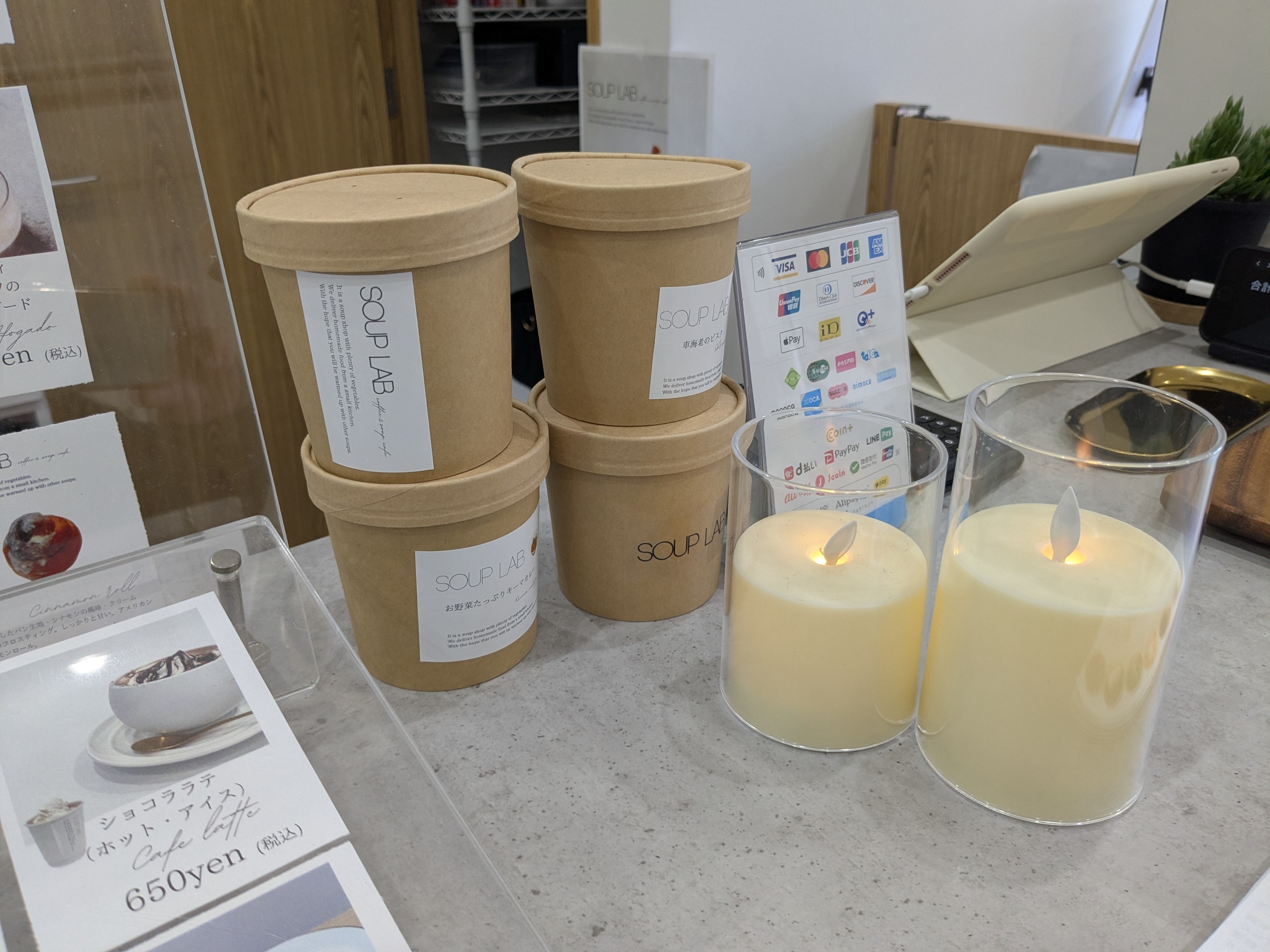 入り口右側にはスープのメニューが!どれも美味しそうです。お腹が空いてきました。