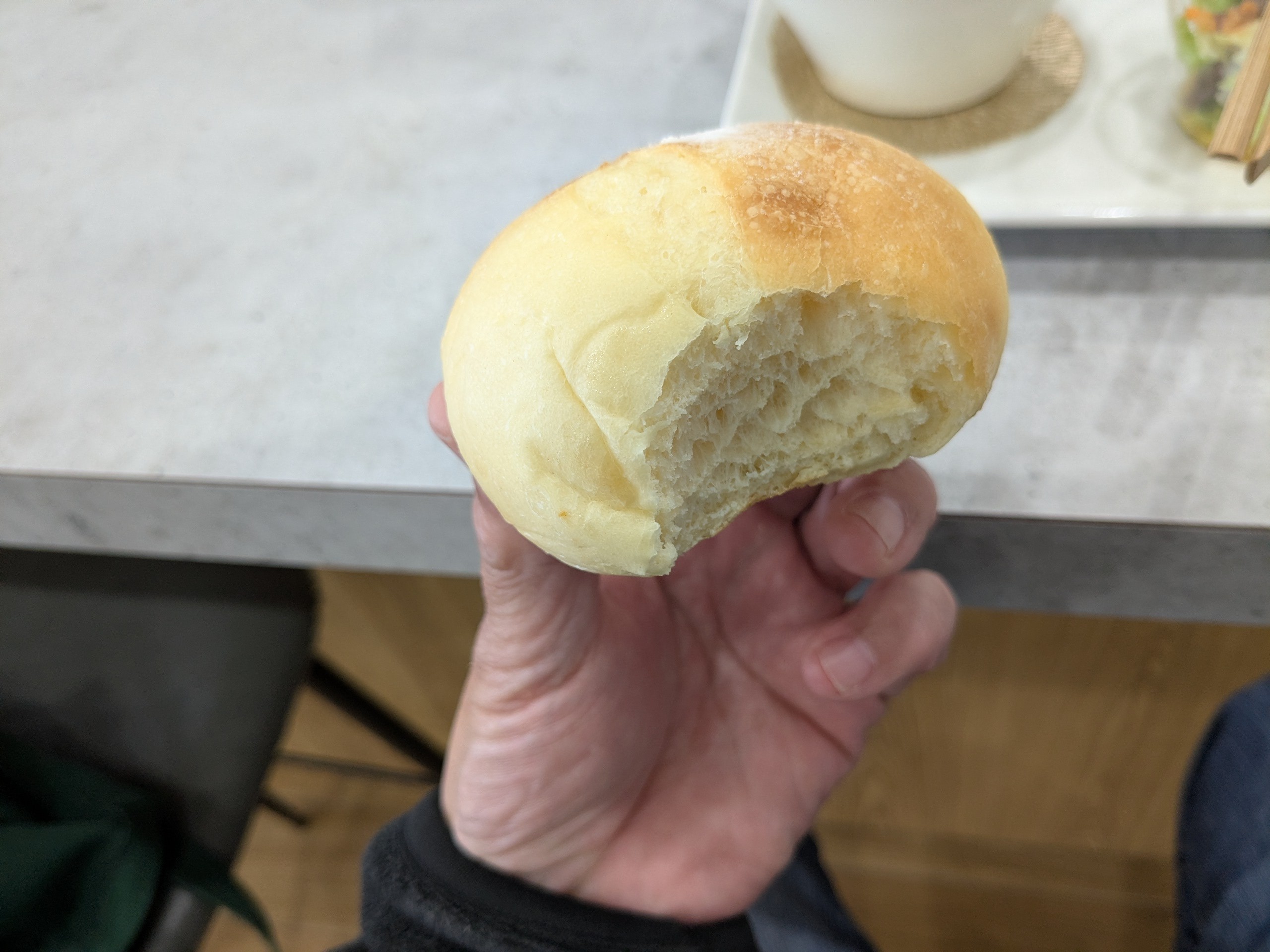 まずはひとかじり!外はカリっと中はもっちりとしていて、小麦の風味が口の中に広がります。