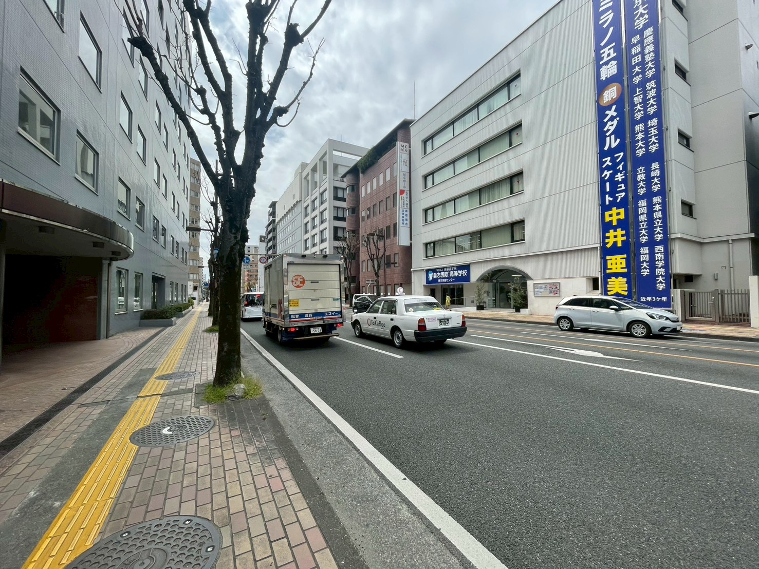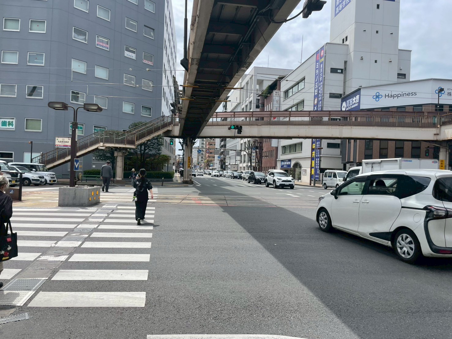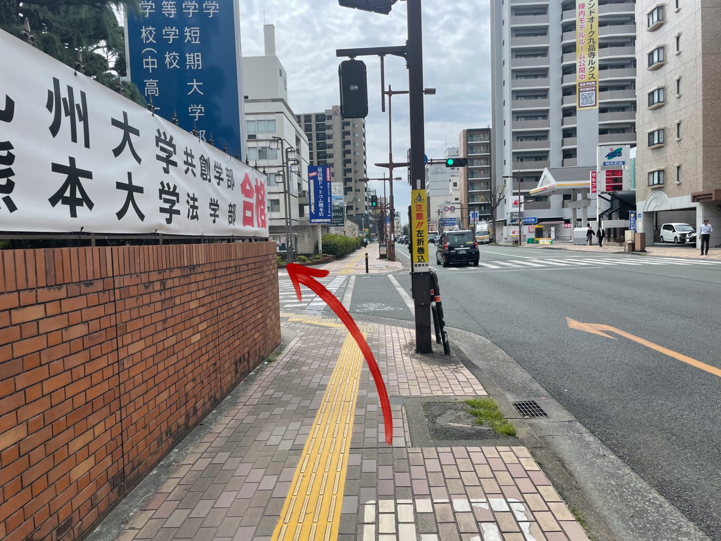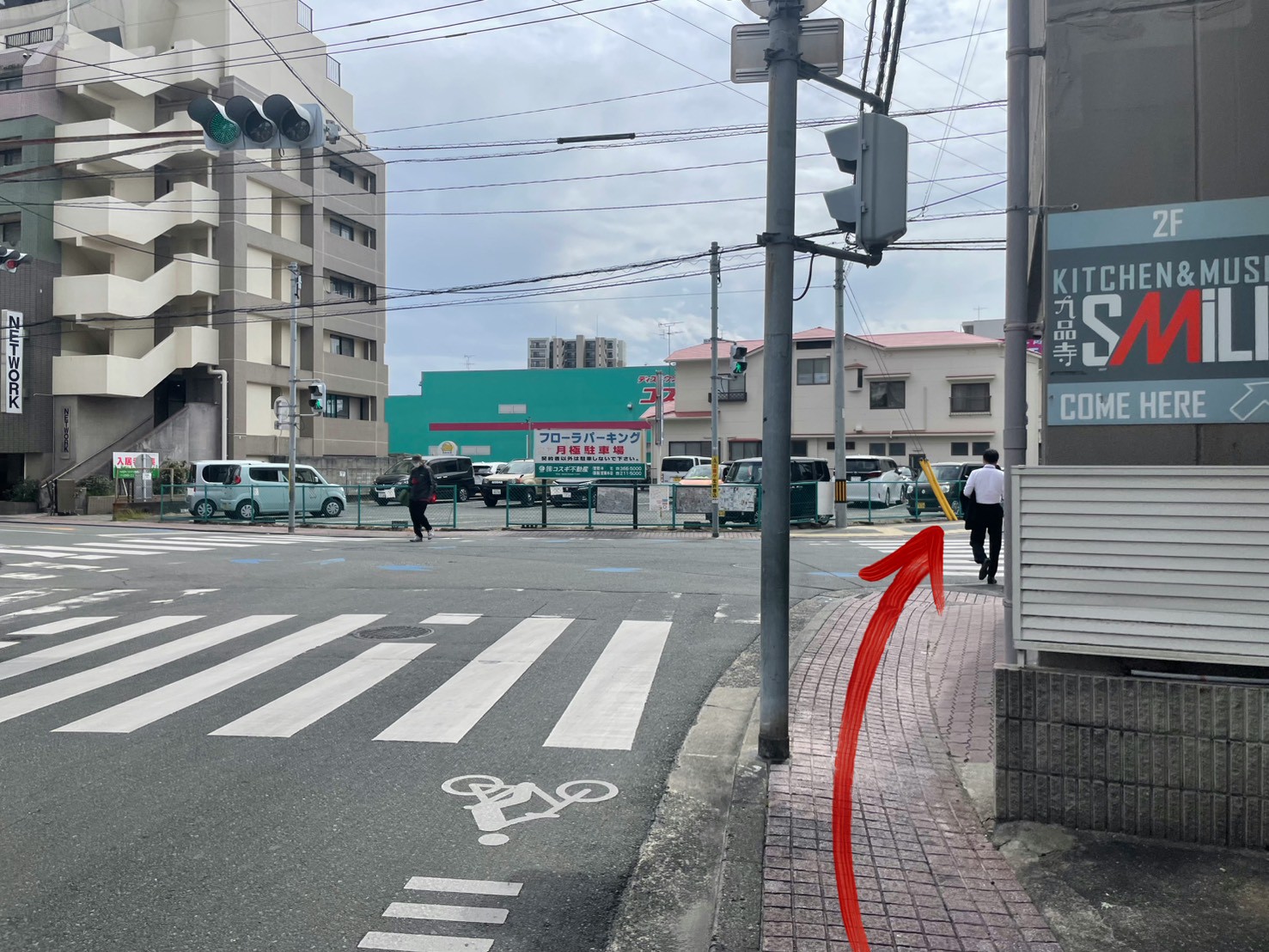 九品寺交差点電停を降りたら2階に「中山歯科」さんの文字が書かれた熊本九品寺ビルの方向へ進みます。