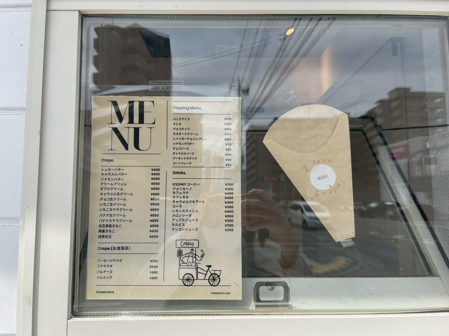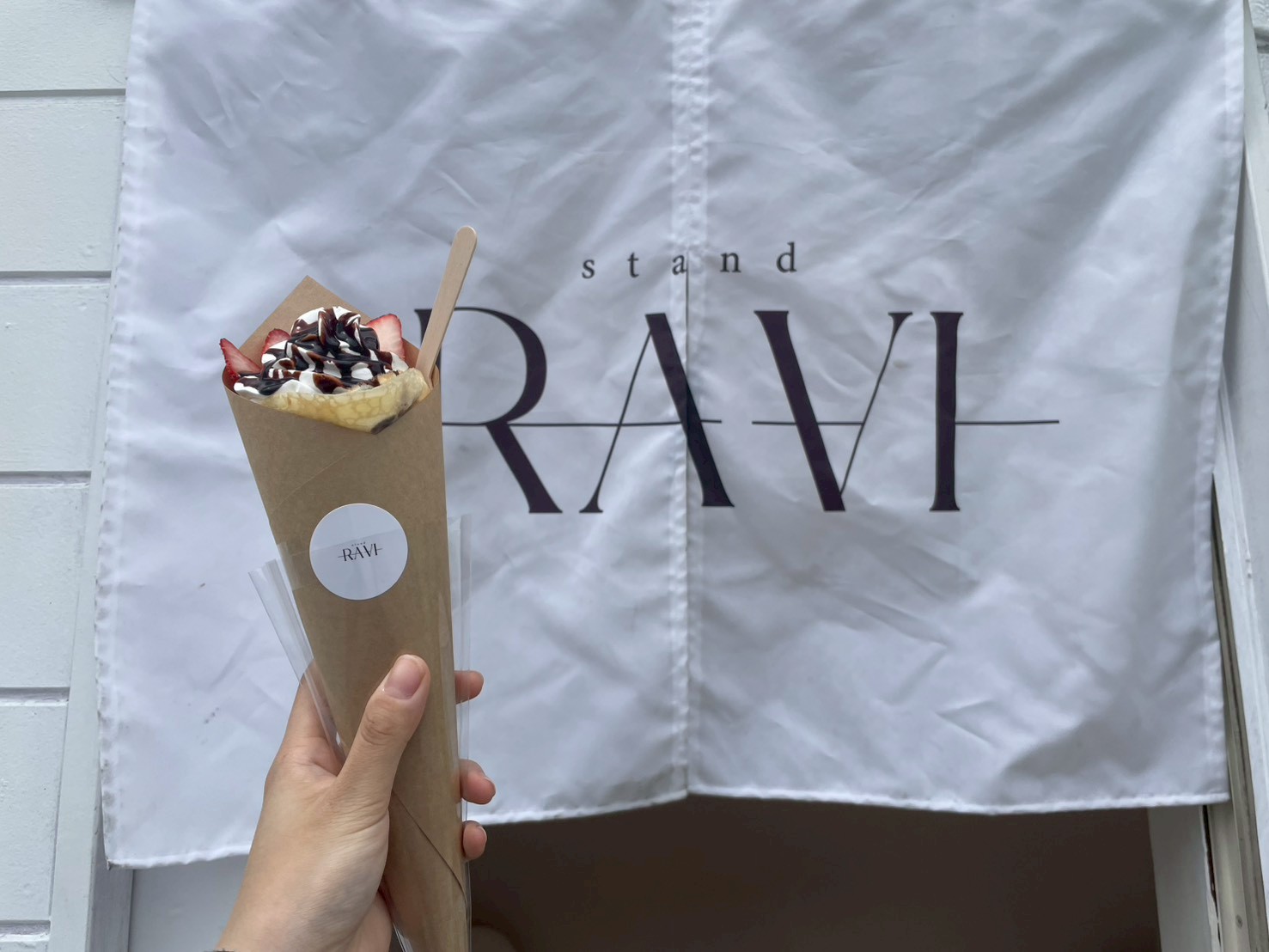 「stand RAVI」さんは注文を受けてからクレープを作るシステム。…というわけで、生地を焼くあま~い匂いを感じながらのんびり待ちます。