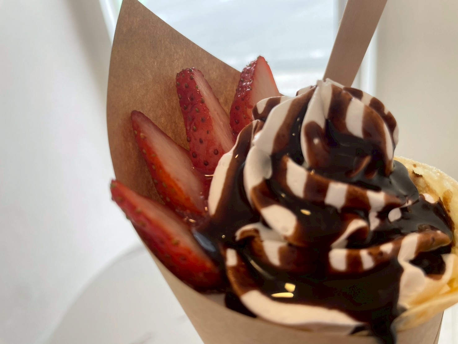 このいちごとホイップクリーム、チョコソースはクレープの底の方にもたっぷり入っているので、最後まで楽しむことができます。
