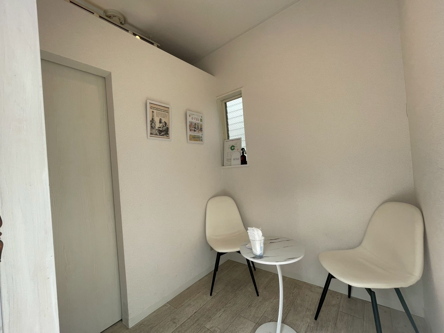 お隣のコインランドリーと比べてもわかる通り、真っ白な外観ですね…!