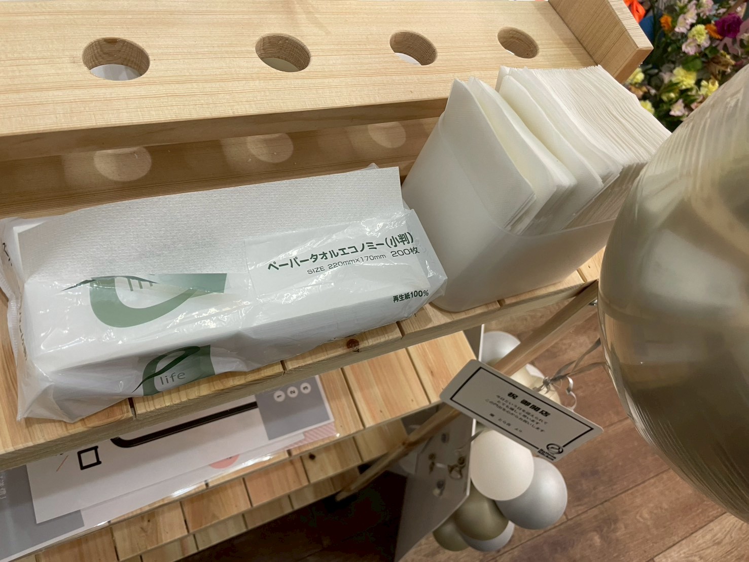 レジ横にお手拭きや紙ナプキンが置いてあるのもありがたいですよね~!必要な分だけこちらから取る仕組みです。