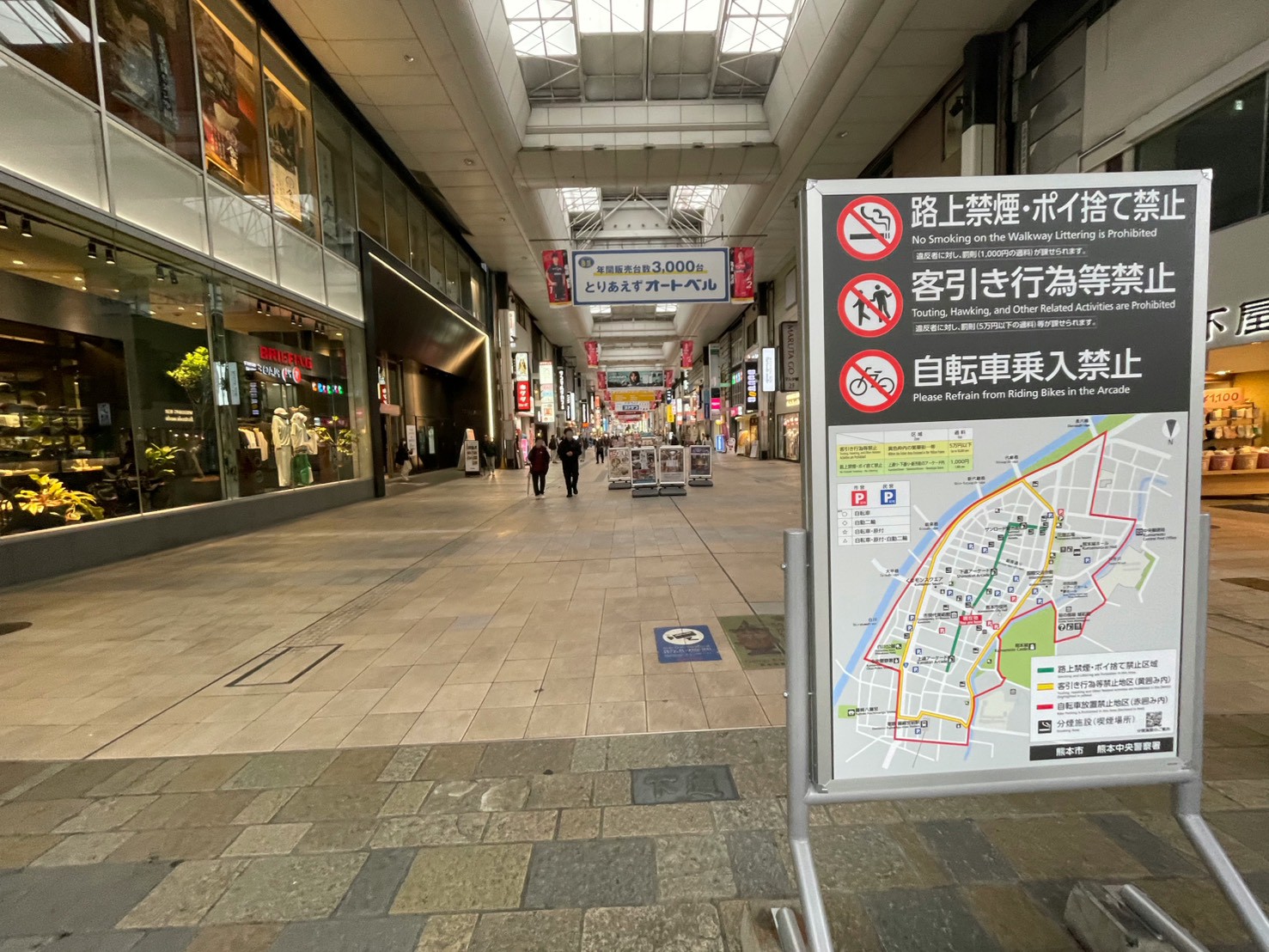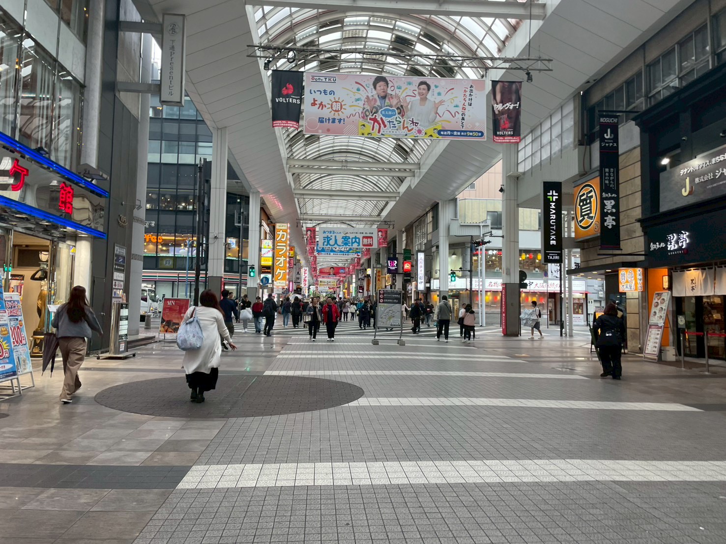 「COCOSA」さんや「ドン・キホーテ下通店」さんを通過し、アーケード街を真っ直ぐ進みます。