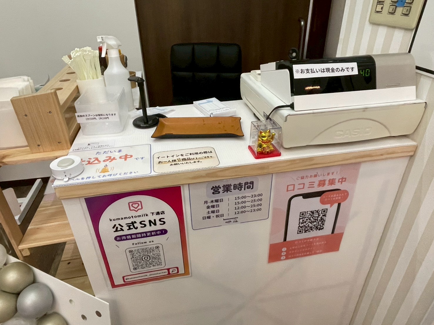 お支払いは現金のみで追加のスプーンは別途料金が発生します。