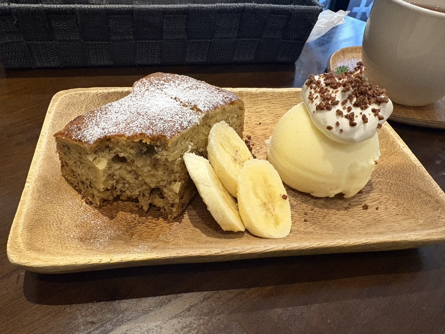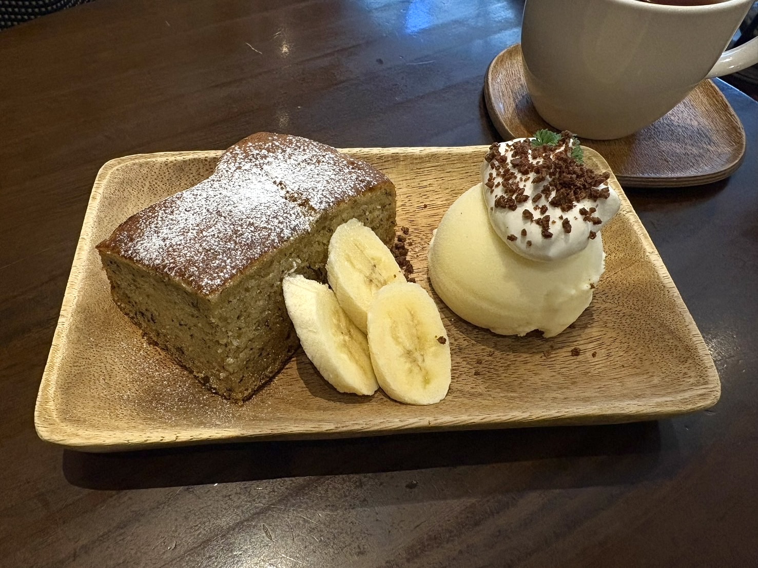 また、付け合わせの冷たいバニラアイスはほんのり温かいバナナケーキと相性抜群。