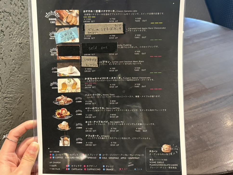 「Cafe SWITCH(カフェ スイッチ)」さんは、ケーキやワッフル、スコーンなどスイーツだけでも多くの種類を提供しています。