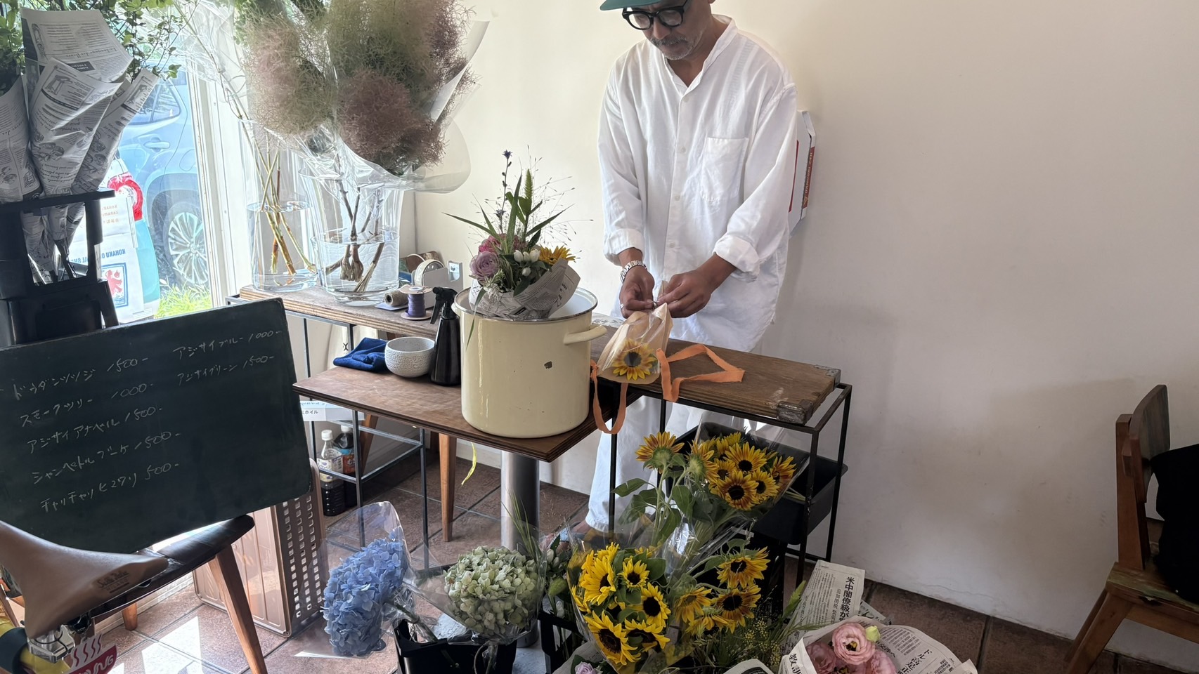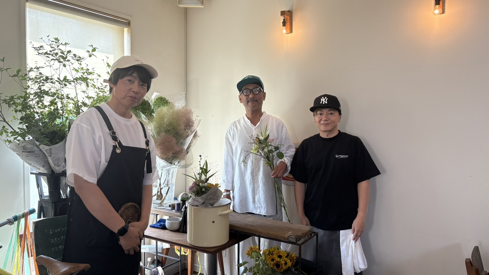 ラーメン店の「醤油そば琥珀(こはく)」さんでは「SHIROQRO(しろくろ)」さんのおにぎりと「Flower Fine(フラワーファイン)」さんのお花のPOP UP!