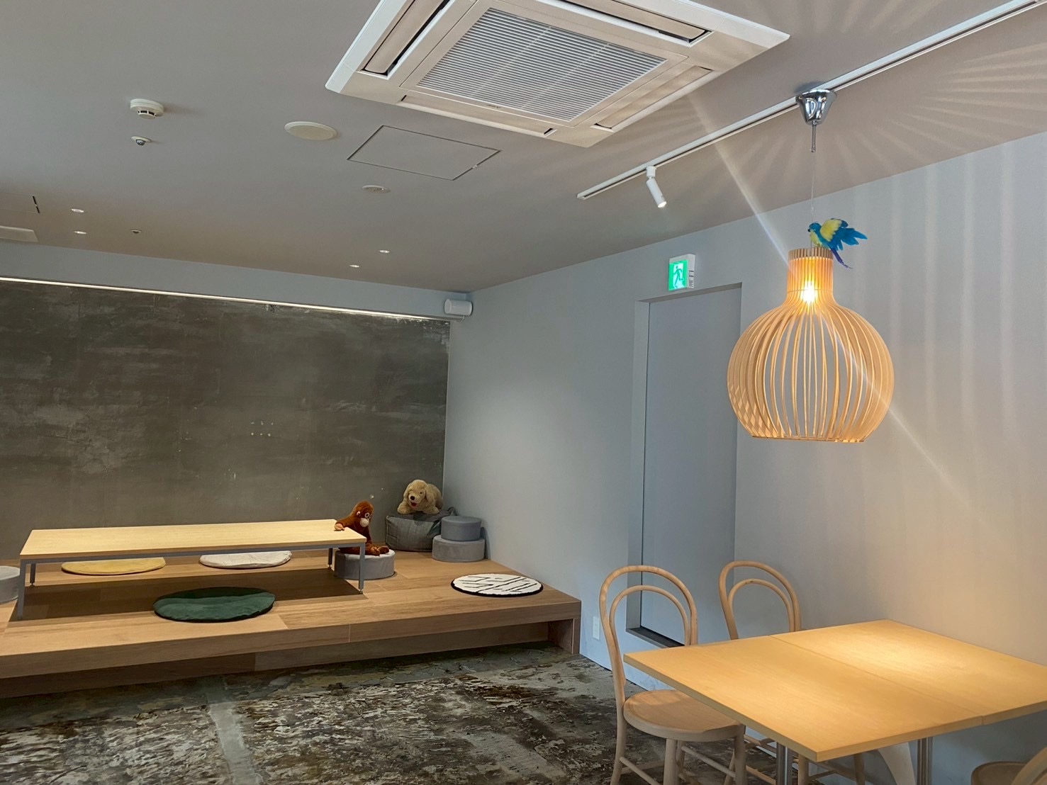 グレーを基調とした落ち着いたトーンの中にもグリーンがアクセントになっていったり、動物のお人形やかわいらしい小物がちょこんと置かれていたりと、居心地の良い店内。