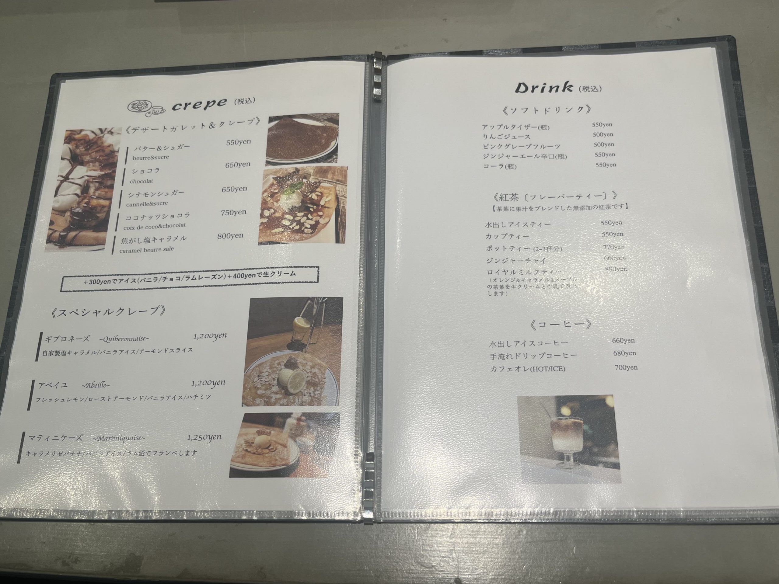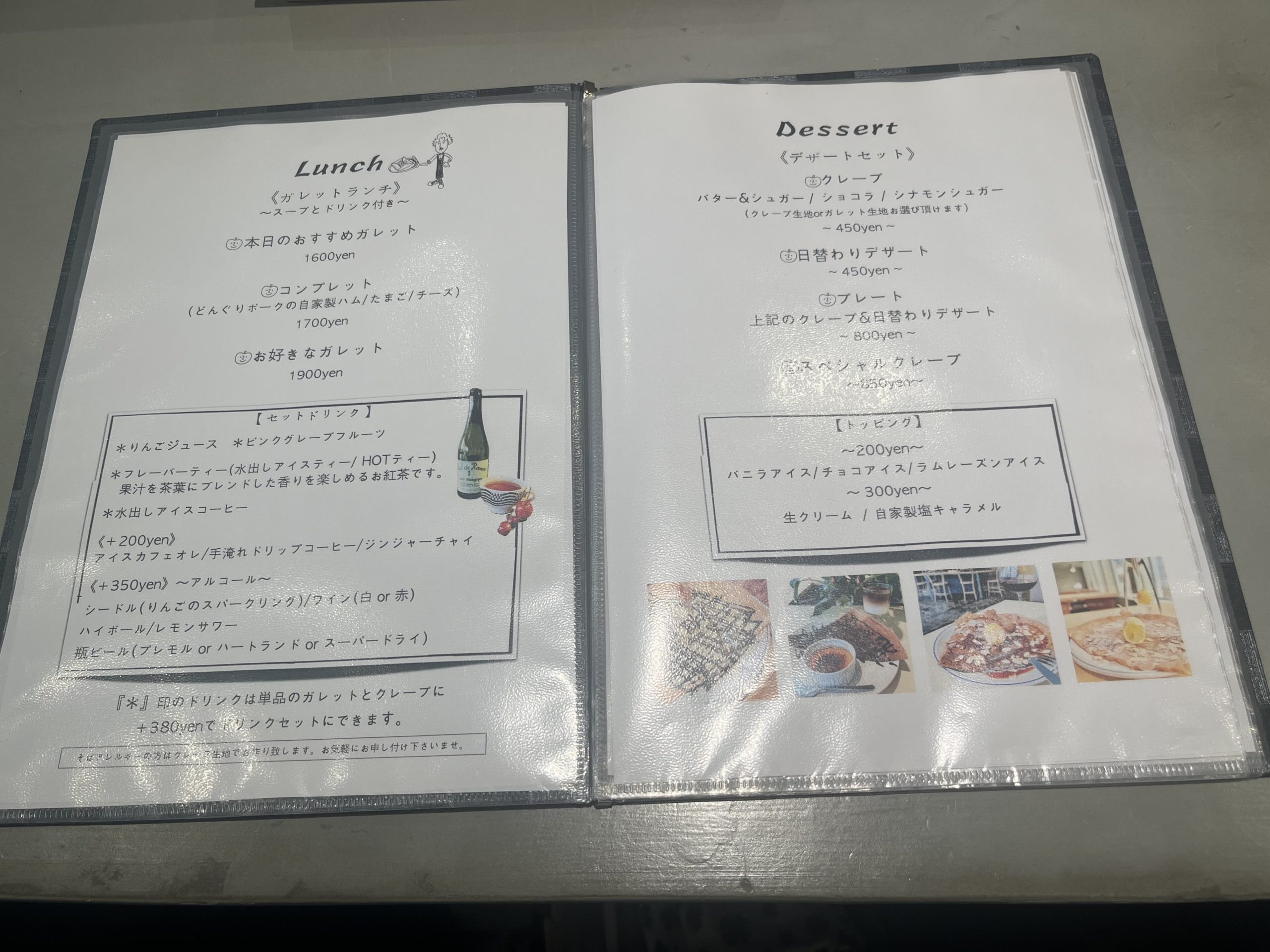 ガレットの他にもクレープなどのデザートやドリンクメニューもありました!