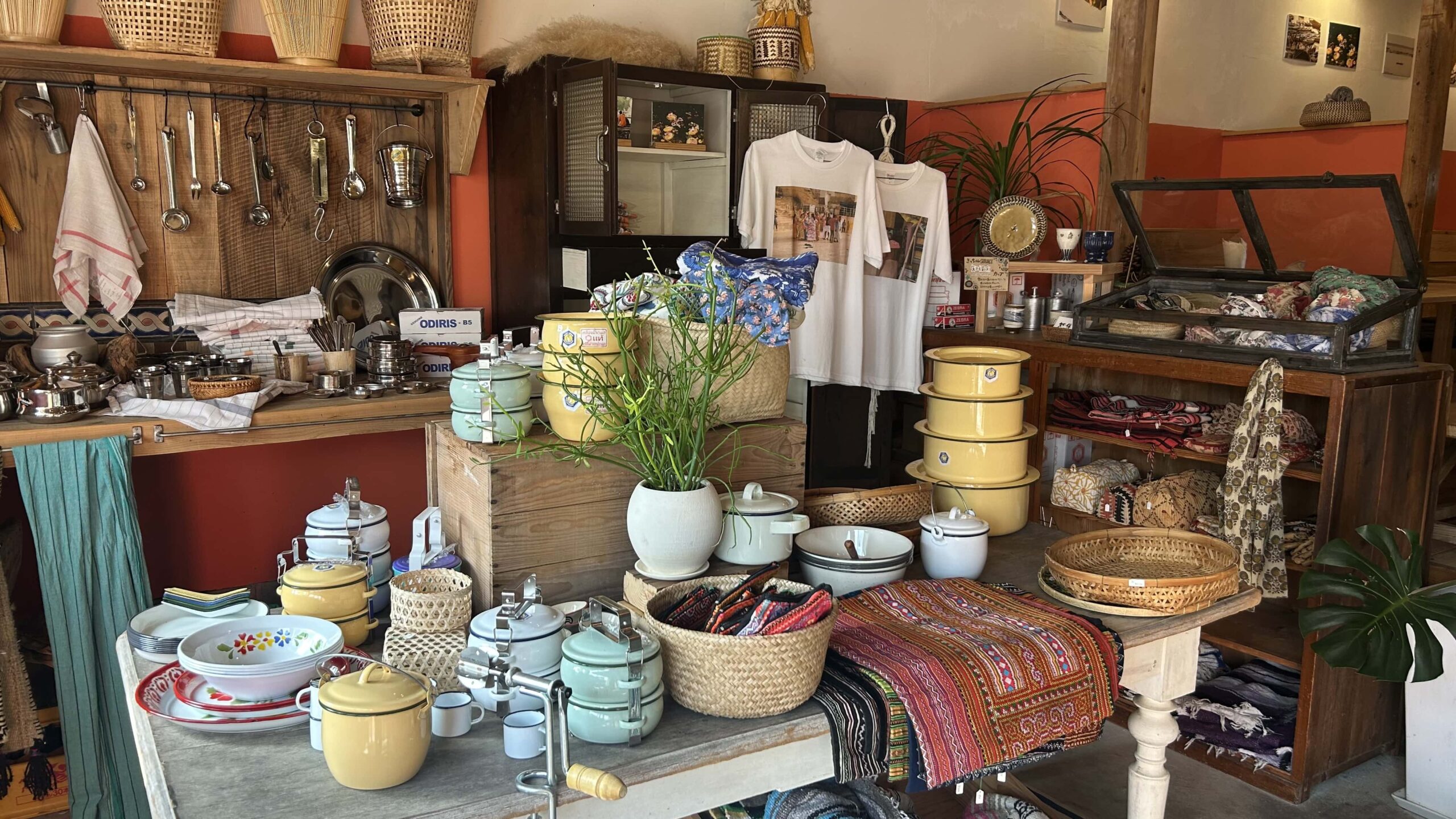 タイやスリランカで買い付けた雑貨をはじめ、旅先で出会ったアイテムが並びます。