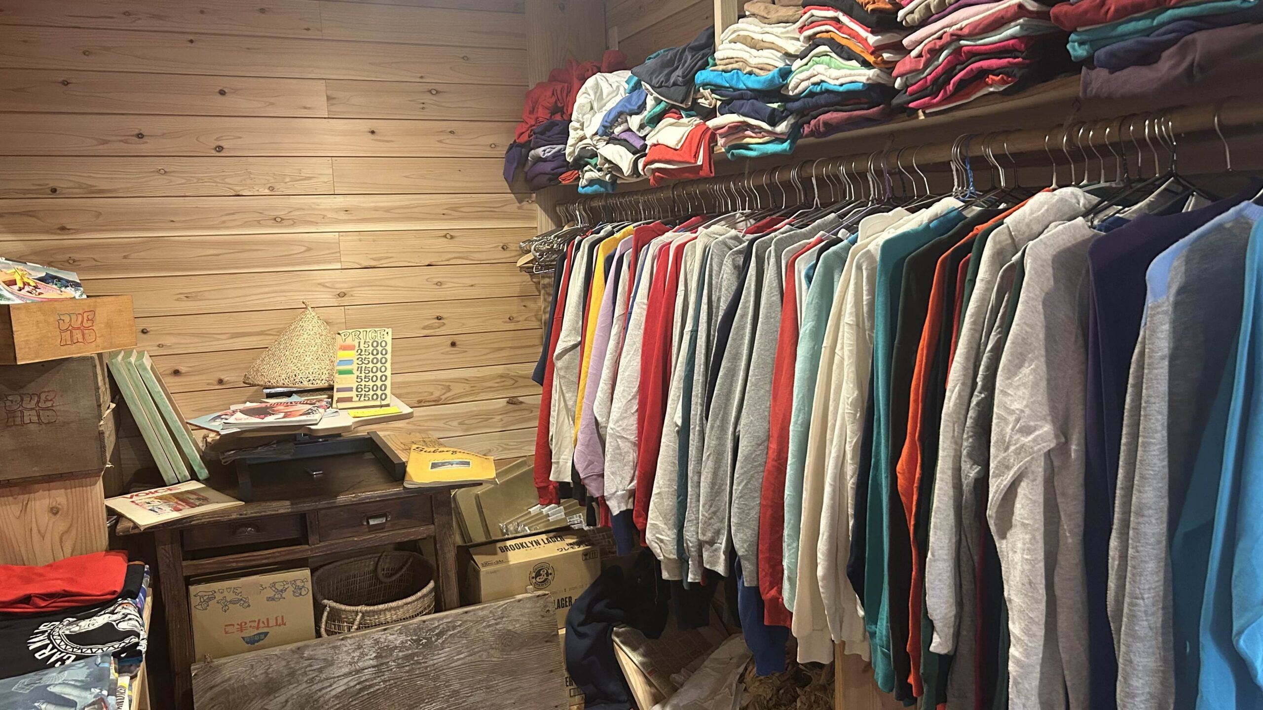 奥には古着屋さんができるほどのたくさんの古着が並んでいます。