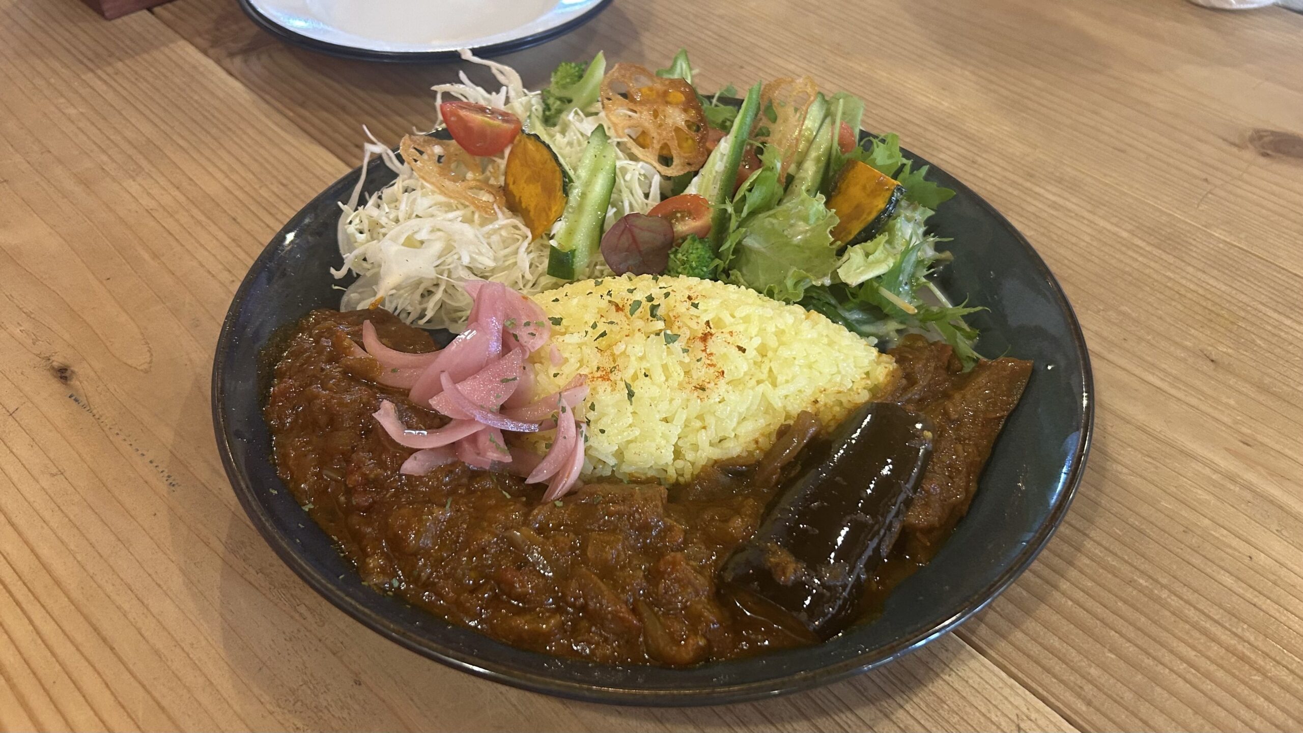 ルーの具材は季節のもので、今回はなすやじゃがいもがごろごろ入っていて、お肉などは入っていないのに満足感たっぷりでした!