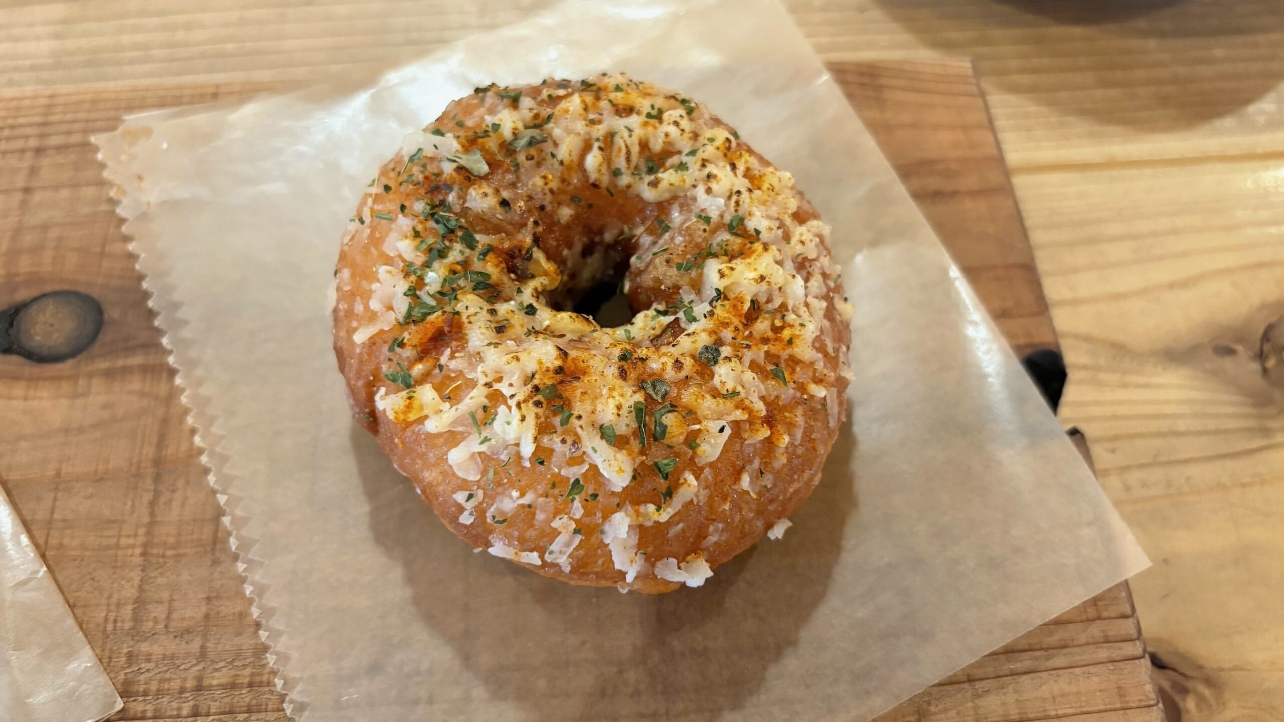 こちらはチーズとスパイスをのせたしょっぱい系のドーナッツ。