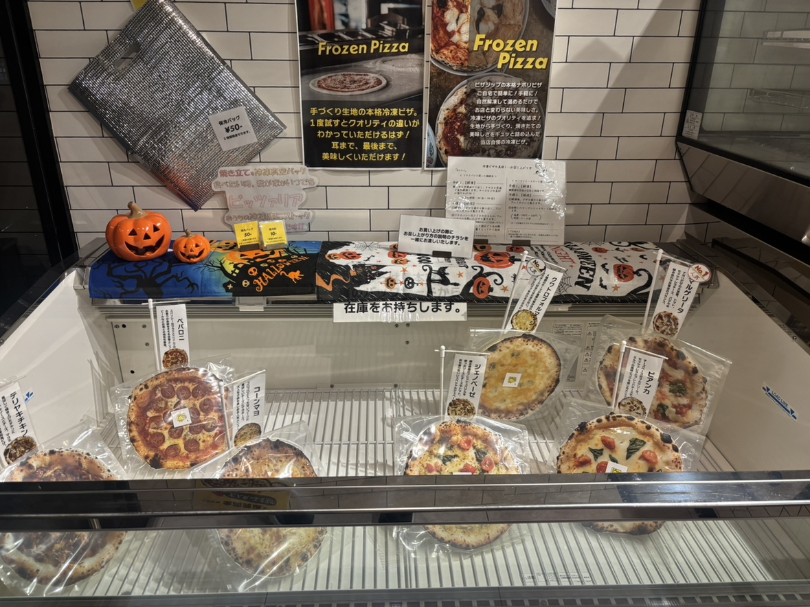 また、「Pizzazzip」さんではテイクアウトもOK。レジカウンター横では冷凍ピザも販売されているので、お家でも本格ナポリピザを楽しむことができますよ。