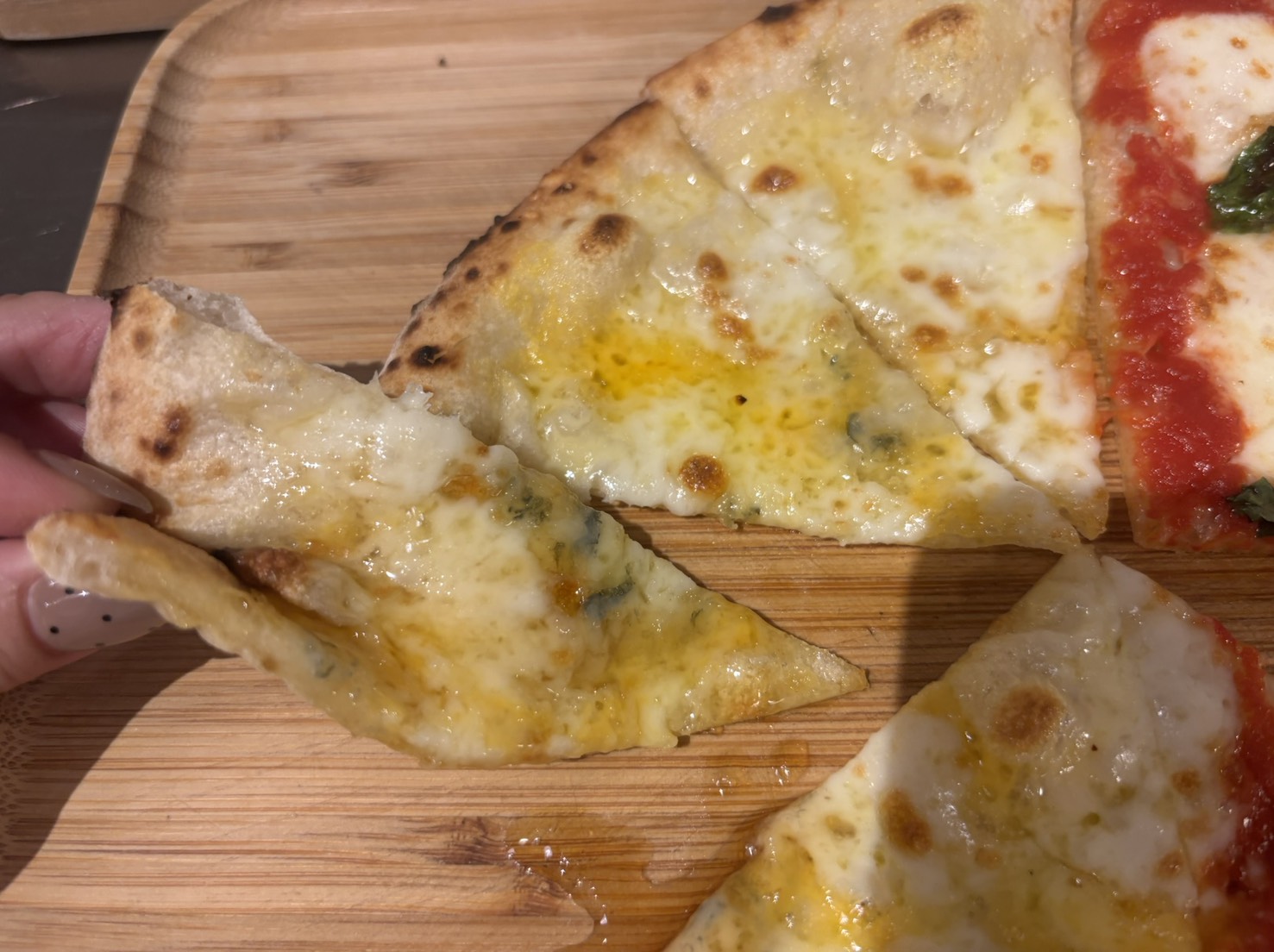 ピザを持ち上げるとモッツァレラチーズがとろ~り!