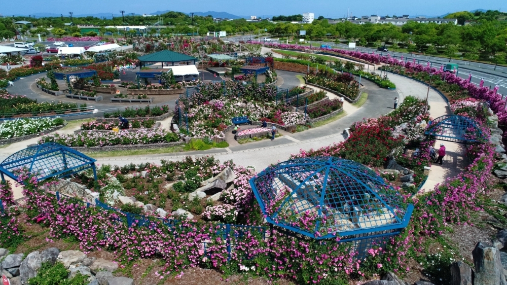 バラの壁やつるバラのトンネルなど、バラの香りと美しさに包まれながら園内を散策できます。