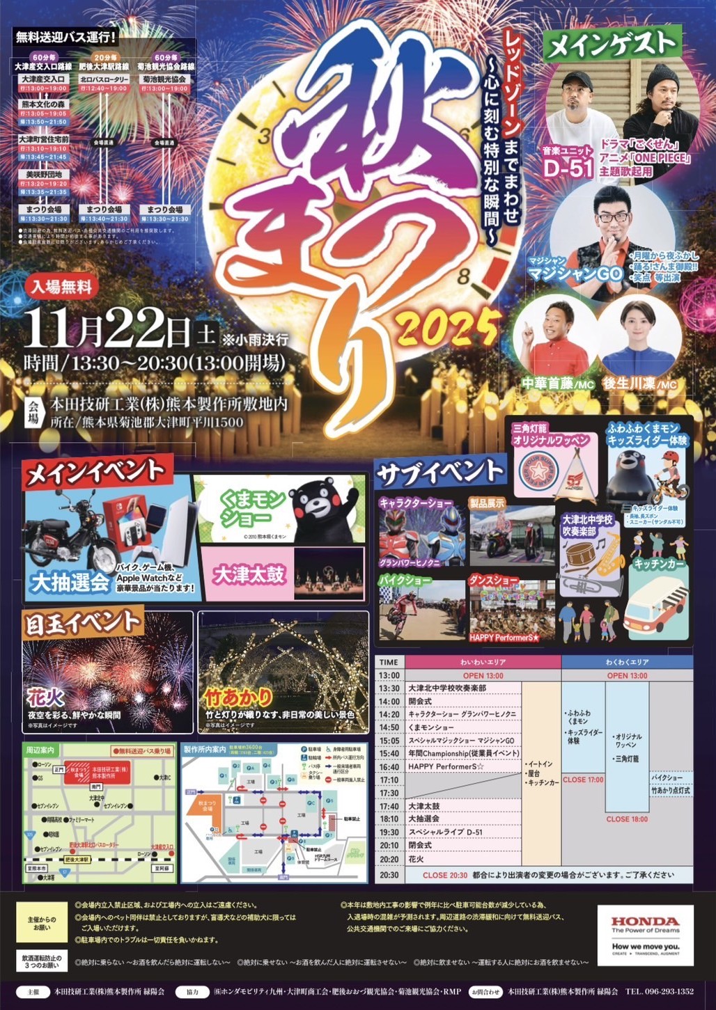 本田技研工業株式会社 熊本製作所が毎年開催している祭りが今年も11月に開催。