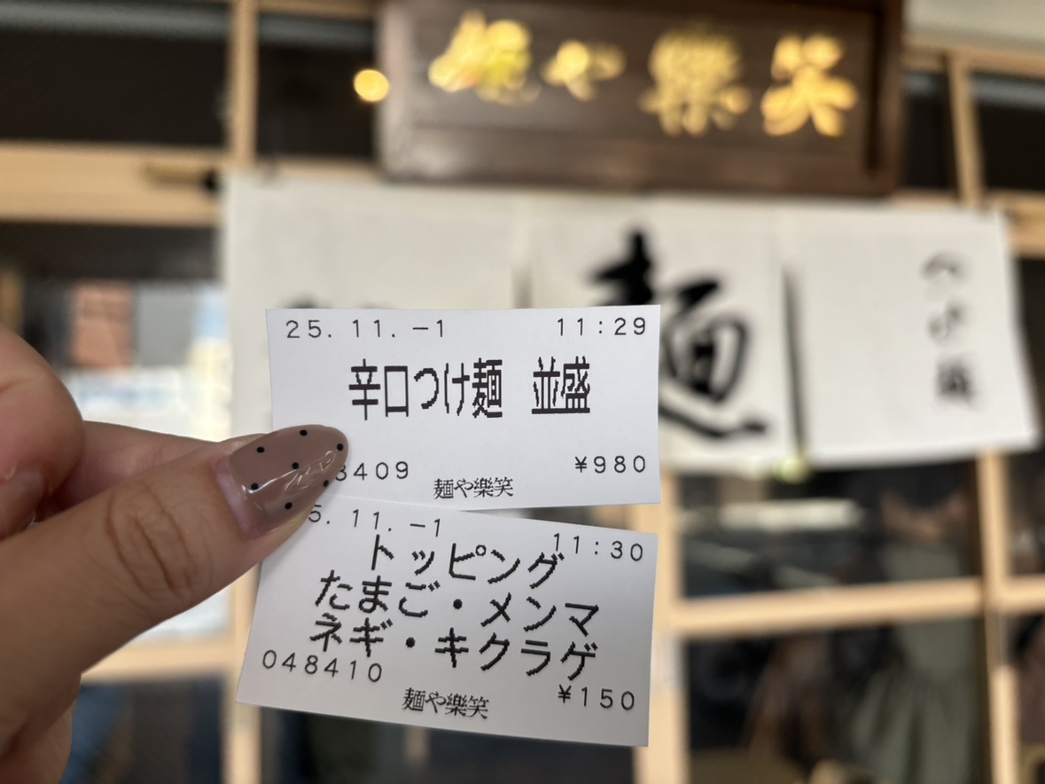 「麺や 樂笑」さんでは、事前に食券機にて購入後、列に並んでいくシステムです。