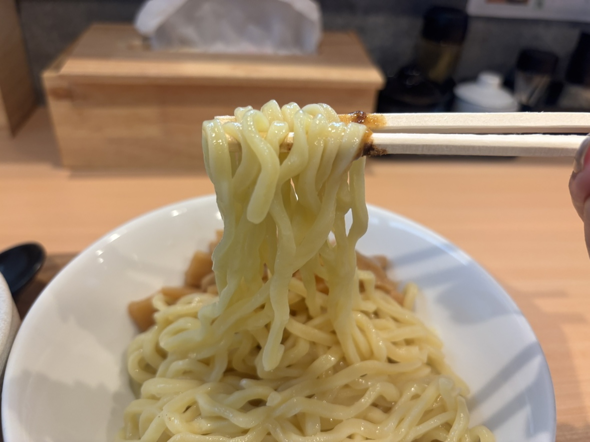 ちぢれた極太の麺ですが、コシがすごいのです。噛むとぎゅっぎゅっとしっかりとした歯ごたえがあり、それでいて、のど越しはつるっと味わえます。