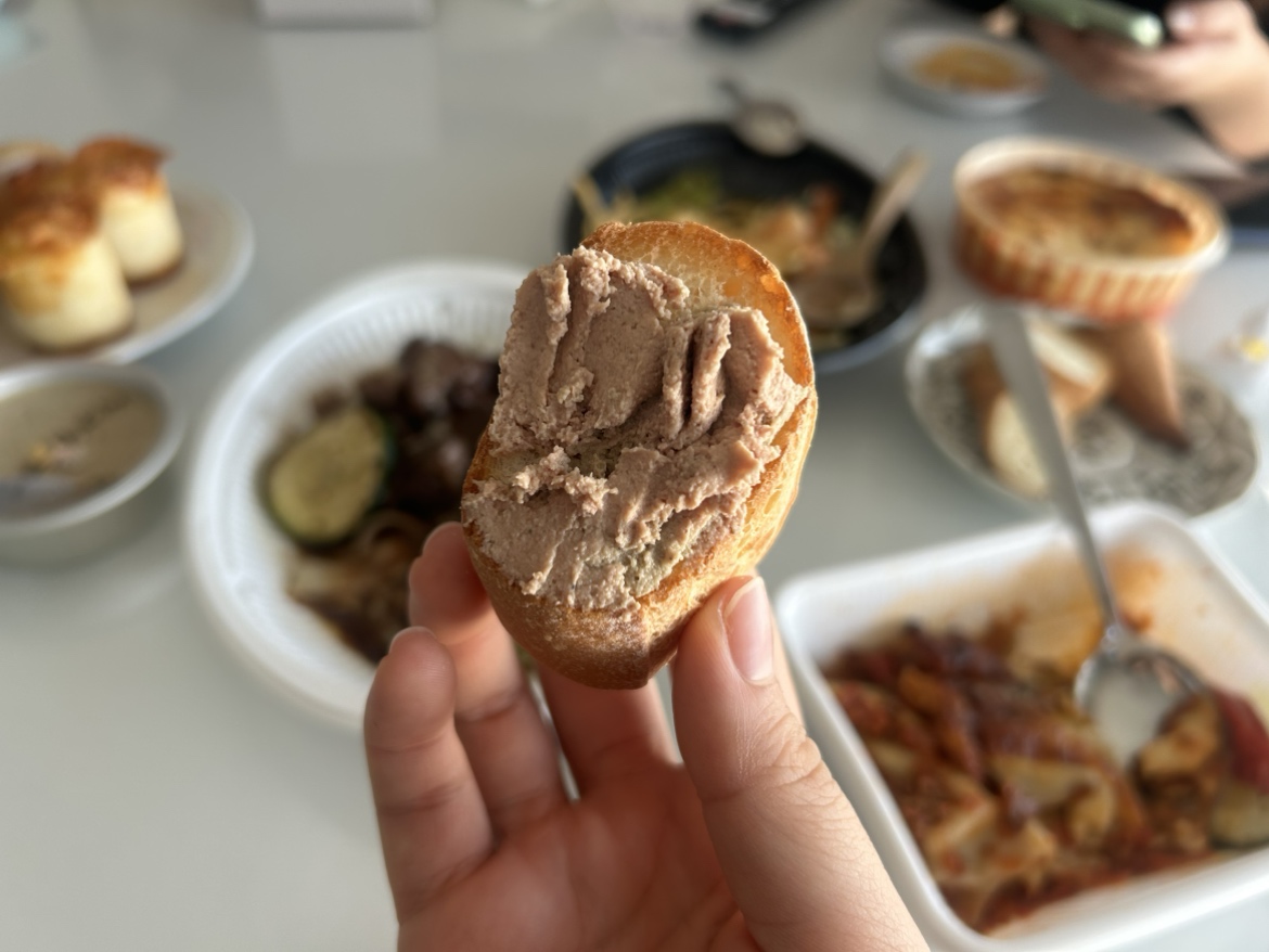 ポティロンさんのフランスパンは、シェフが粉から厳選した自家製!砂糖、卵、油脂分を入れないシンプルなパンで、レバームースとの相性もバッチリでした。