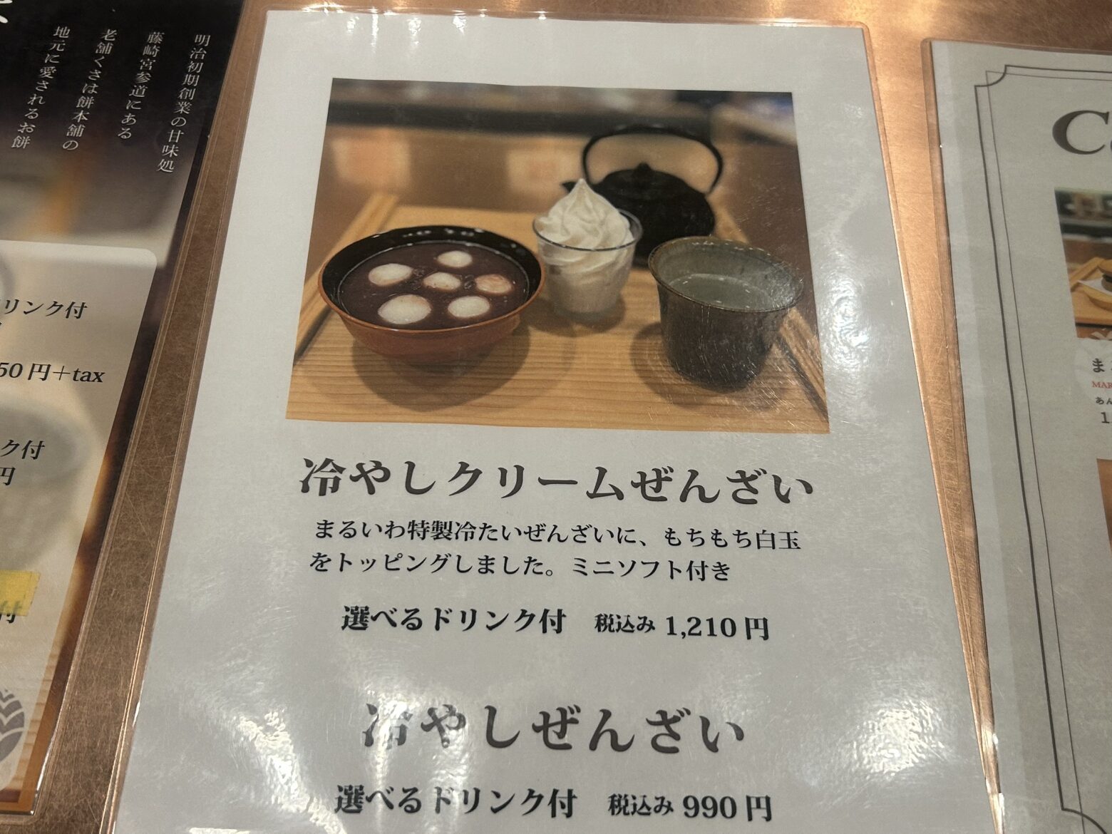 他にもぜんざいや、こだわりのドリンクメニューも充実しています。