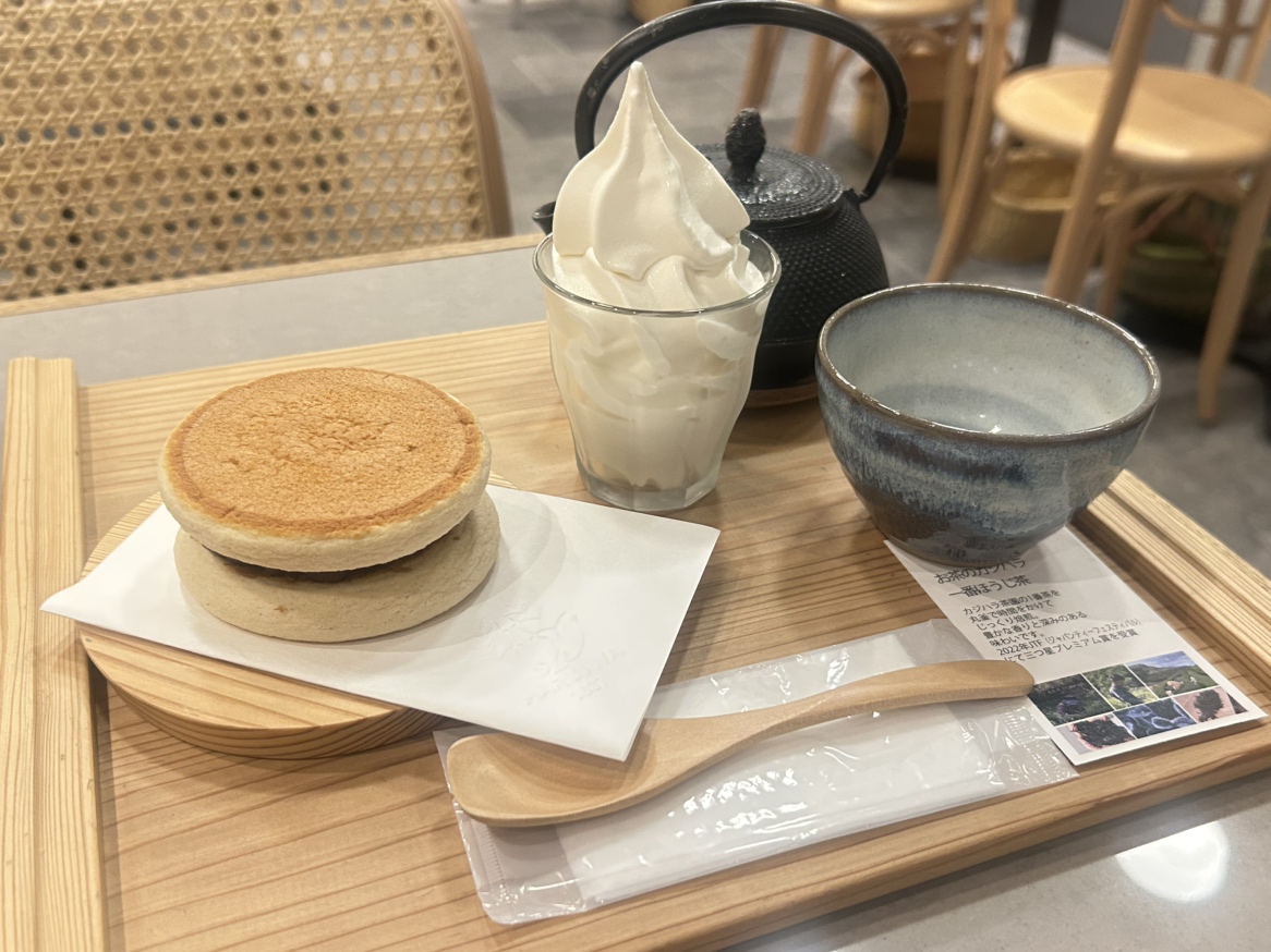 「菓舗まるいわ」さんは、どら焼きがメインのお店ですが、どら焼きとソフトクリーム、ドリンクが付いた「まるいわセット」が一番人気なのだそう!