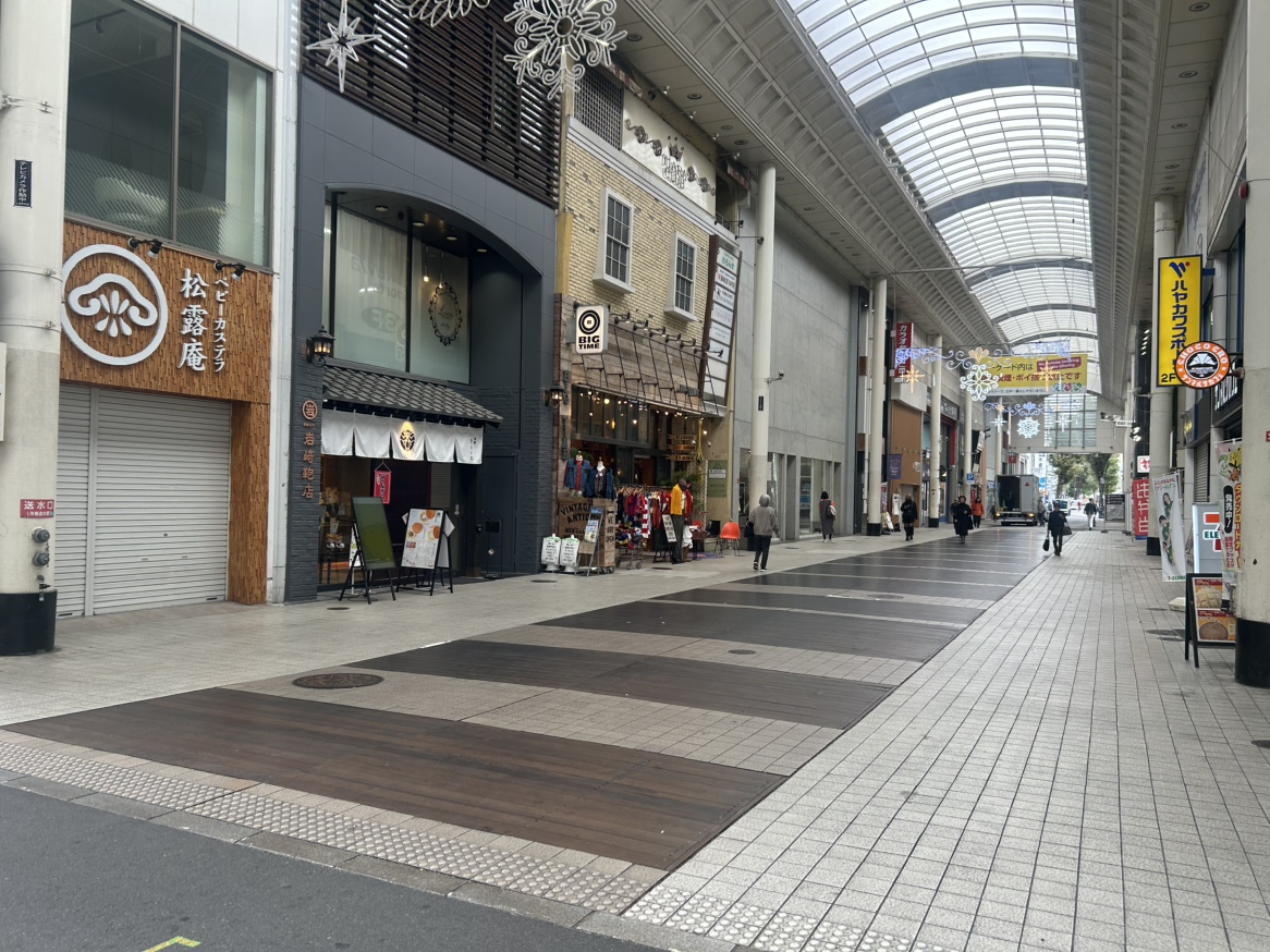 「菓舗まるいわ」さんは、熊本市中央区上通町に位置しています。上通アーケード内にあるので、アクセスしやすいのが嬉しいポイント!