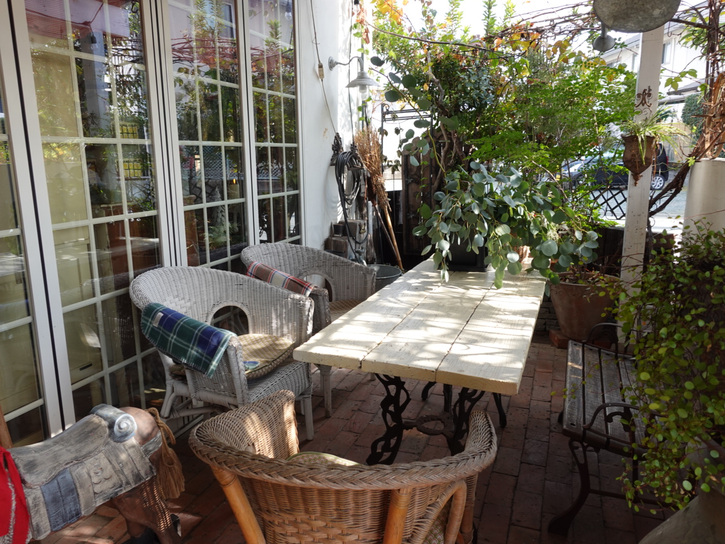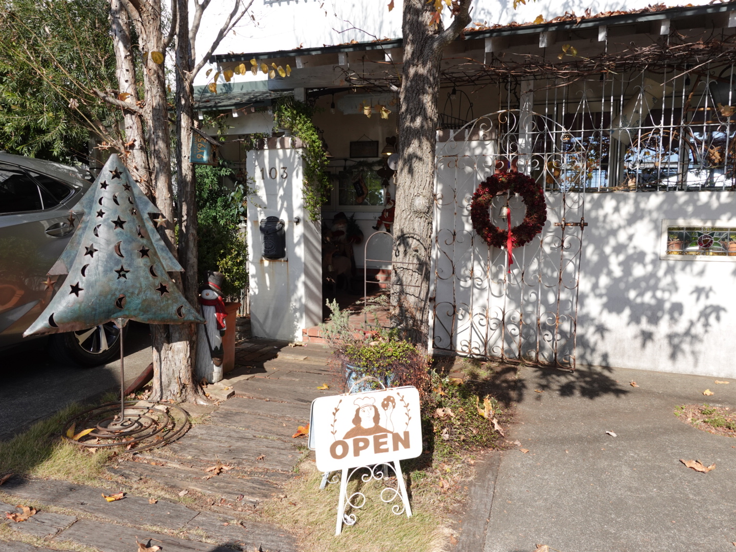 住宅街の一角にあるお店は、たくさんの緑に包まれたおしゃれな建物です。駐車場はお店の前に4台分あります。少し狭いので注意してくださいね。