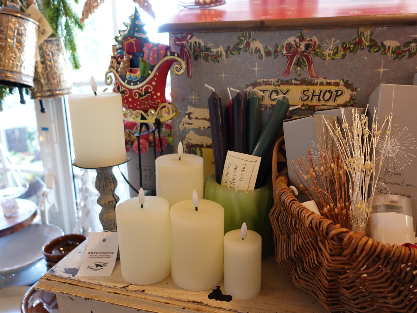 店内には、さまざまな種類のクッキーがずらり。インテリアまでもがクッキーの世界観を際立たせています。店内に置かれているキャンドルなどの小物は、購入できるものもあるそうです。お家でのパーティーにぴったり。