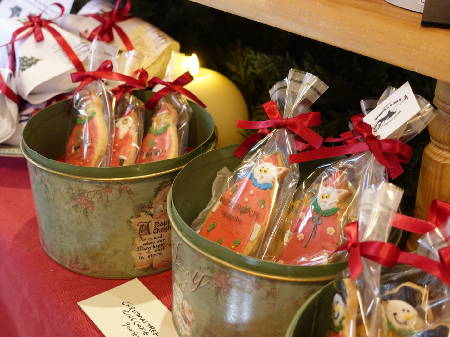私はちょうどクリスマスの時期に訪れたので、クリスマスにちなんだサンタさんの恰好をした猫や雪だるまなどのクッキーがありました。